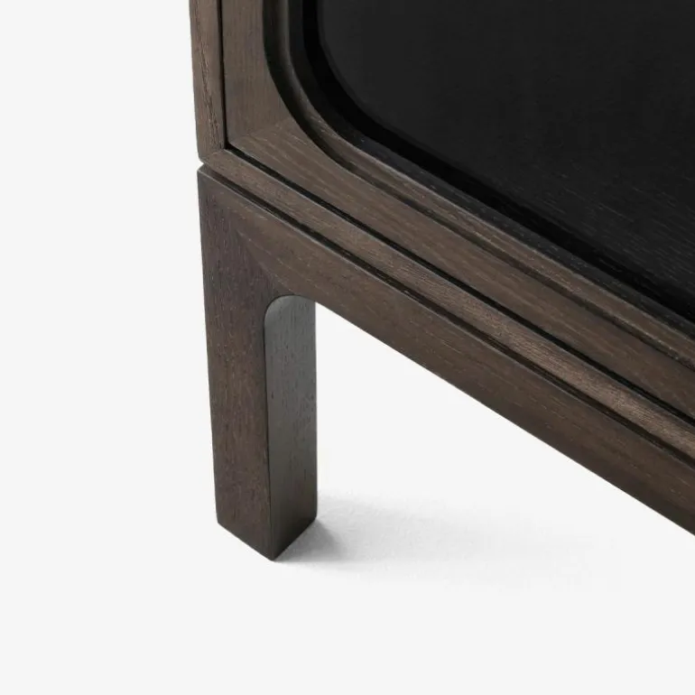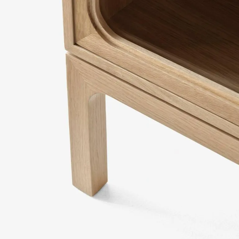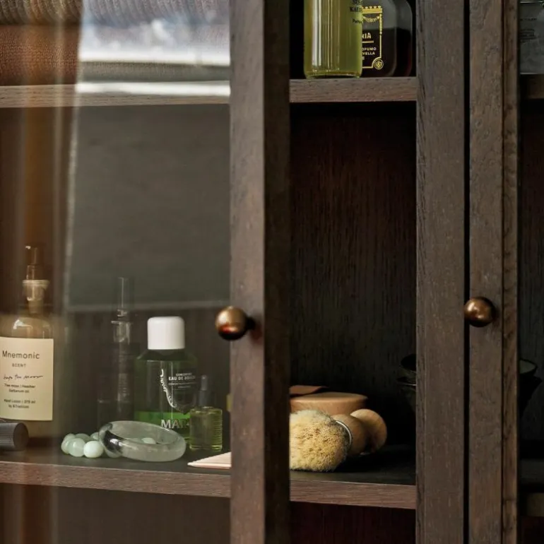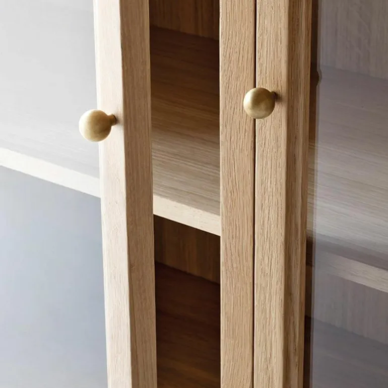 De Trace SC88 Kast bestaat uit een combinatie van massief eikenhout en eikenfineer. Zo zijn de planken gemaakt van MDF en bedekt met eikenfineer. Vervolgens is de kast behandeld met een natuurlijke of donkergekleurde lak op waterbasis. De naturel eikenhouten uitvoering is voorzien van messing scharnieren en messing knoppen, terwijl de donkergebeitste uitvoering verrijkt is met gebronsde, koperen scharnieren en gebronsde, stalen knoppen. Het geharde glas van de kastdeuren wordt omgeven door een gefreesd frame van massief hout.