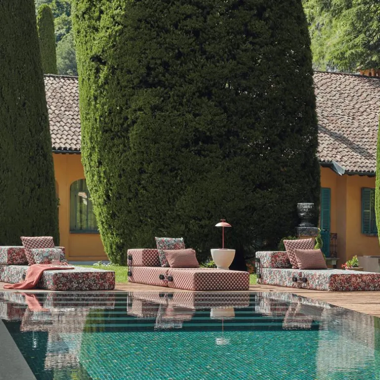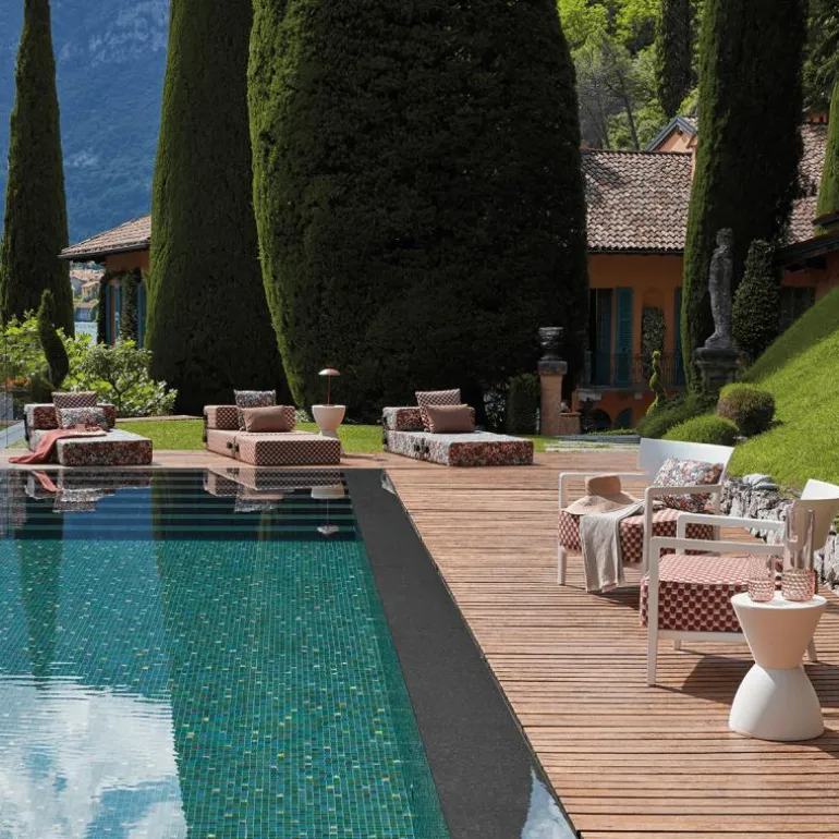 Het ontwerp straalt een balans uit tussen speelse flexibiliteit en visuele rust. Door de eenvoudige beweging van de kussens verandert de functie, maar blijft het silhouet consistent in zijn elegantie. Dit maakt het meubel geschikt voor zowel functionele doeleinden als voor het creëren van een ontspannen, luxueuze ambiance. Of het nu dient als extra zitplaats, comfortabele ligplek of decoratief element, de Trix Outdoor past zich moeiteloos aan zonder afbreuk te doen aan stijl of comfort.