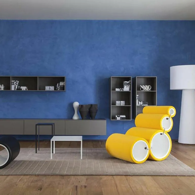 De stoel is samengesteld uit vier holle cilinders. Deze zijn gemaakt van polypropyleen door middel van een roterend gietproces. De vier cilinders hebben elk een andere afmeting en samen kunnen ze naar ieders wens worden bevestigd. De verschillende onderdelen worden aan elkaar vastgemaakt door middel van metalen klemmen. Elk element is omhuld met polyurethaan schuim en die bekleed is met stoffering. U heeft de keuze uit twee verschillende varianten.