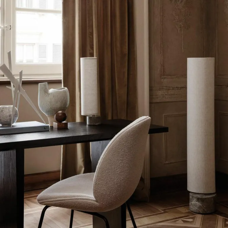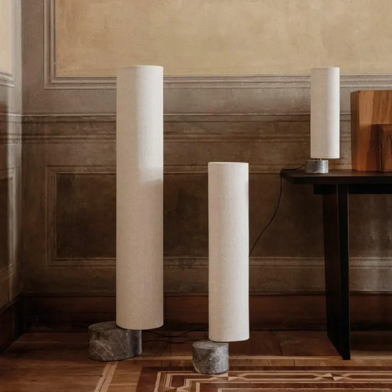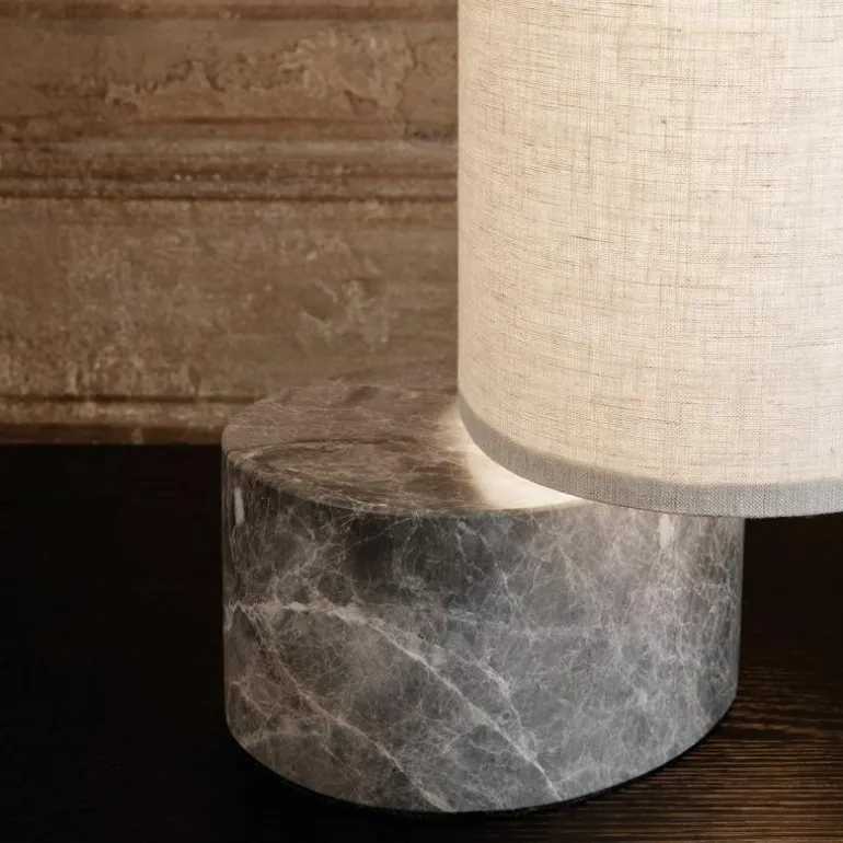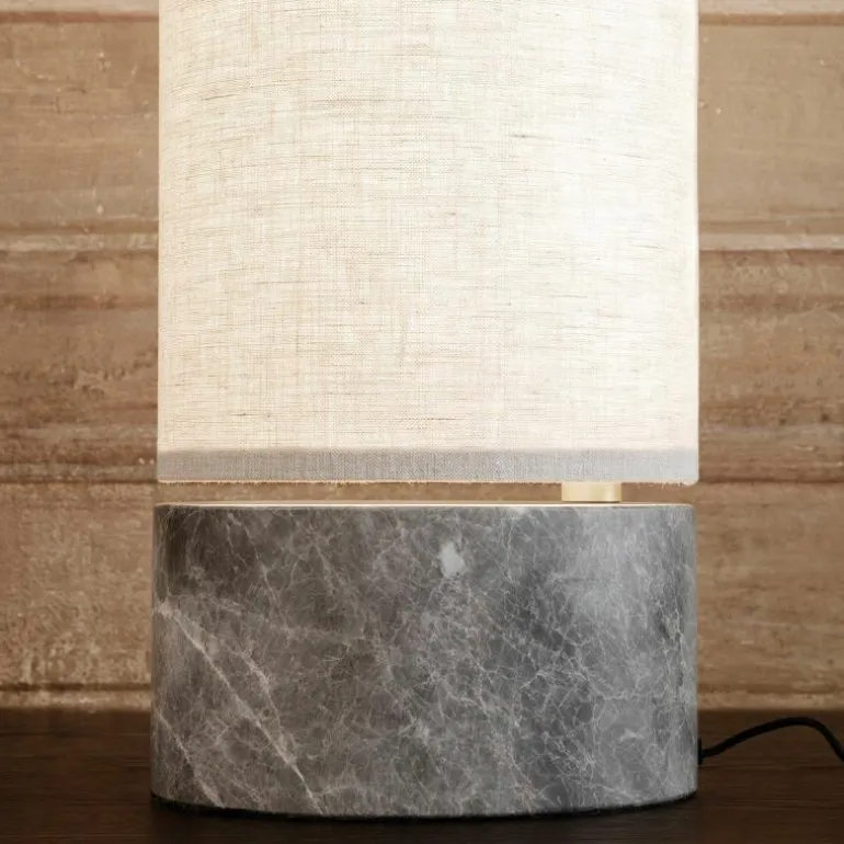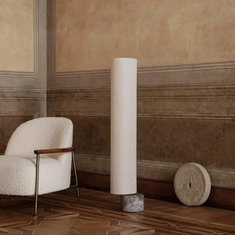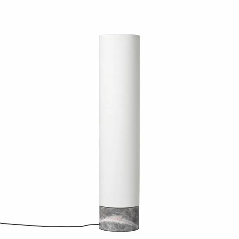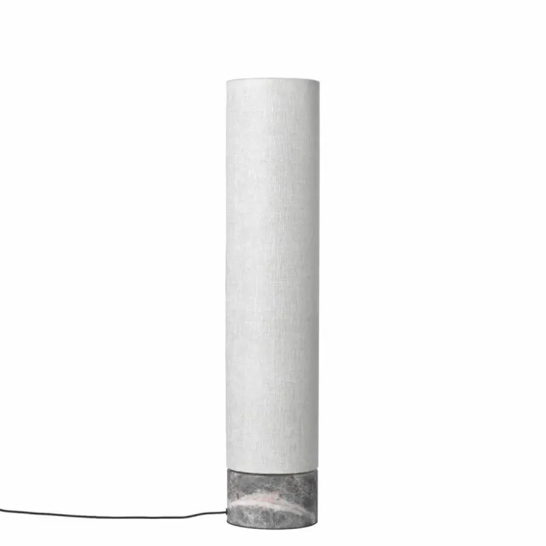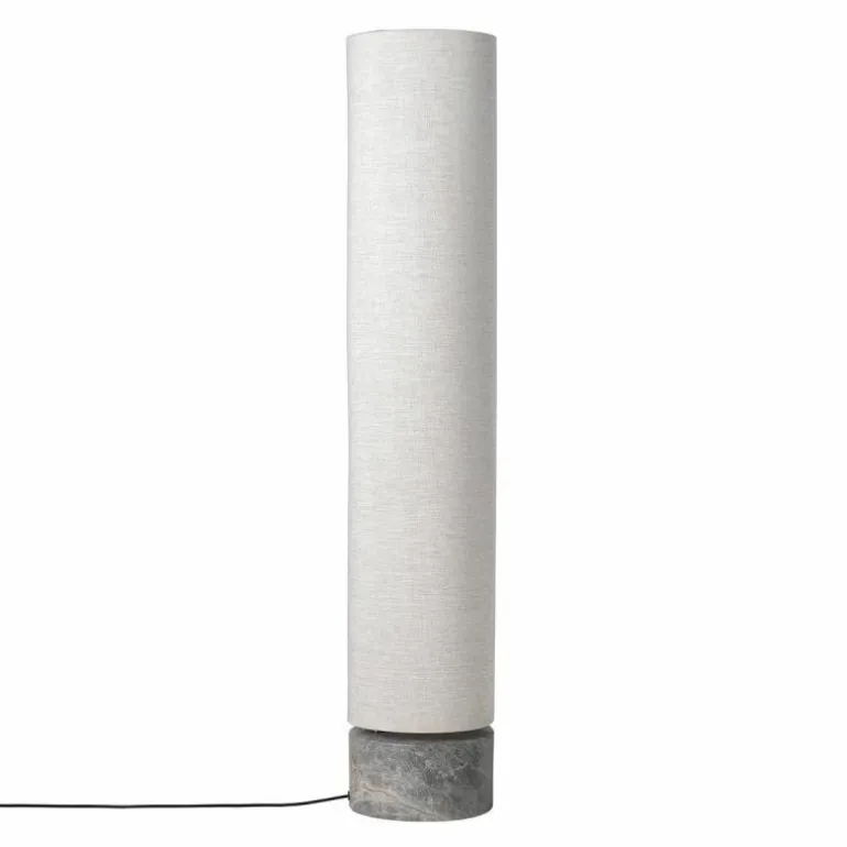 De voet van de vloerlamp is gemaakt van grijs marmer. Aan de marmeren voet zit een arm van antiek messing en aan deze arm zit de kap bevestigd. Voor de lampenkap heeft u de keuze uit een variant van wit linnen of een variant van naturel canvas. Het design is voorzien van geïntegreerde LED verlichting en een koord omhuld met zwart stof. De Unbound Vloerlamp is verkrijgbaar in een hoogte van 80 centimeter en een hoogte van 120 centimeter.