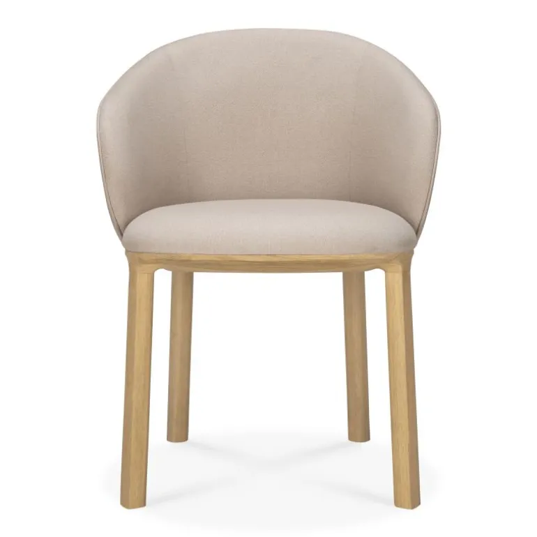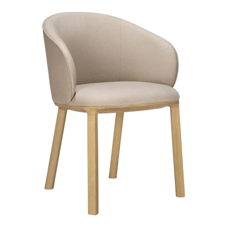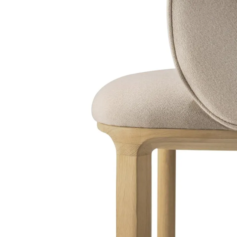 Het frame van de Unda stoel is vervaardigd uit massief eikenhout, gekozen om zijn robuustheid, duurzaamheid en warme uitstraling. Het hout wordt met grote zorg verwerkt en afgewerkt, waarbij de natuurlijke structuur en kwaliteit volledig tot hun recht komen. Deze ambachtelijke benadering onderstreept het vakmanschap waarmee elk exemplaar wordt vervaardigd.