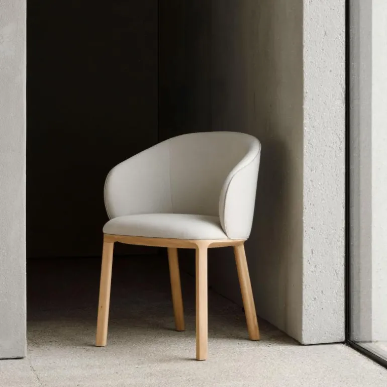 Wat de Unda stoel bijzonder maakt, is de subtiele dynamiek tussen zijn vloeiende vormen en strakke lijnen. De stoel oogt licht en elegant, maar voelt stevig en stabiel aan. De zorgvuldig vormgegeven houten poten en het open karakter van de rugleuning versterken het ruimtelijke effect, waardoor de stoel zich moeiteloos laat integreren in uiteenlopende interieurstijlen – van modern en minimalistisch tot warm en klassiek.