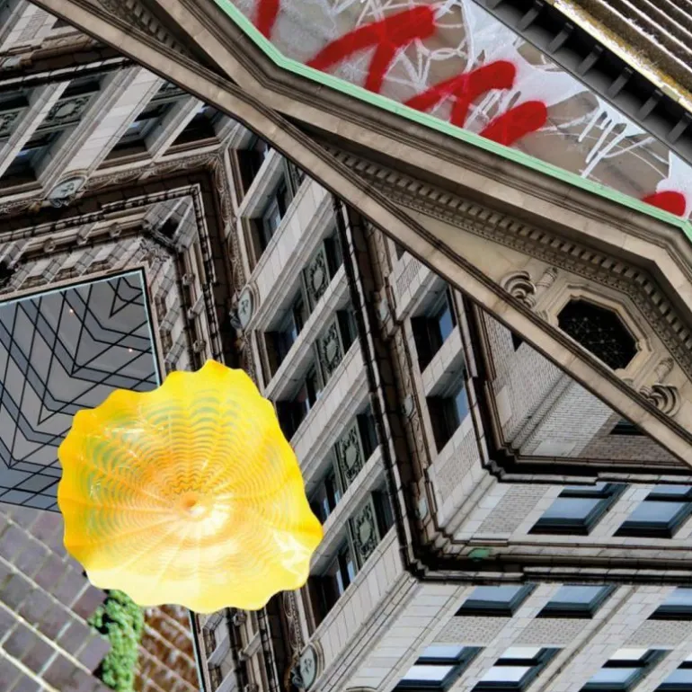 Bij Vancouver denkt u misschien aan een grijze, met wolkenkrabbers bebouwde Canadese stad, maar als we dit vloerkleed moeten geloven, is het verrassend kleurrijk. De basis van blauw en grijs is versierd met goene, gele en rode accenten. Wanneer u het kleed van dichtbij bekijkt, zijn er nog honderden kleuren meer te ontdekken in het met een fotoprint bedrukte vloerkleed van polyamide. Polyamide garens zijn dankzij de synthetische aard goed schoon te houden en bovendien behoudt het zijn kwaliteit en kleur beter dan andere materialen. Het vloerkleed is verkrijgbaar met een diameter van 250 en 350 centimeter. De onderkant is voorzien van vilt.