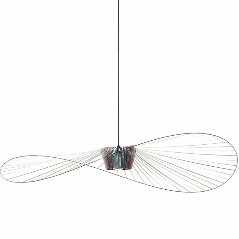 Het design is verkrijgbaar in verschillende uitvoeringen. Zo kunt u kiezen voor een Vertigo Hanglamp in de kleuren White, Black, Cobalt, Copper of Beetle. Zoals de naam al doet vermoeden, verandert de Beetle variant afhankelijk van de hoek waarin u naar de lamp kijkt van kleur, net als een kever. De uitvoeringen in White, Black, Cobalt en Copper hebben een zwart frame, een zwart plafondkapje en een zwarte kabel. De witte variant heeft een wit frame met een witte kabel en plafondkap. Het frame heeft een ijzeren basis, maar de buitenste ring is vervaardigd uit glasvezel. Alle varianten hebben een royale diameter van 200 centimeter en een hoogte van 17 centimeter. De aanbevolen lichtbron is een E27 halogeenlamp van maximaal 75 Watt. Heeft u liever een LED lichtbron? Ga dan uit van een lichtbron van circa 12 Watt. Deze komt qua opbrengst overeen met het aantal watt van de halogeenlamp. De lichtbron is dimbaar wanneer deze is verbonden met een externe dimmer. Zowel de lichtbron als de dimmer kunt u direct mee bestellen. r