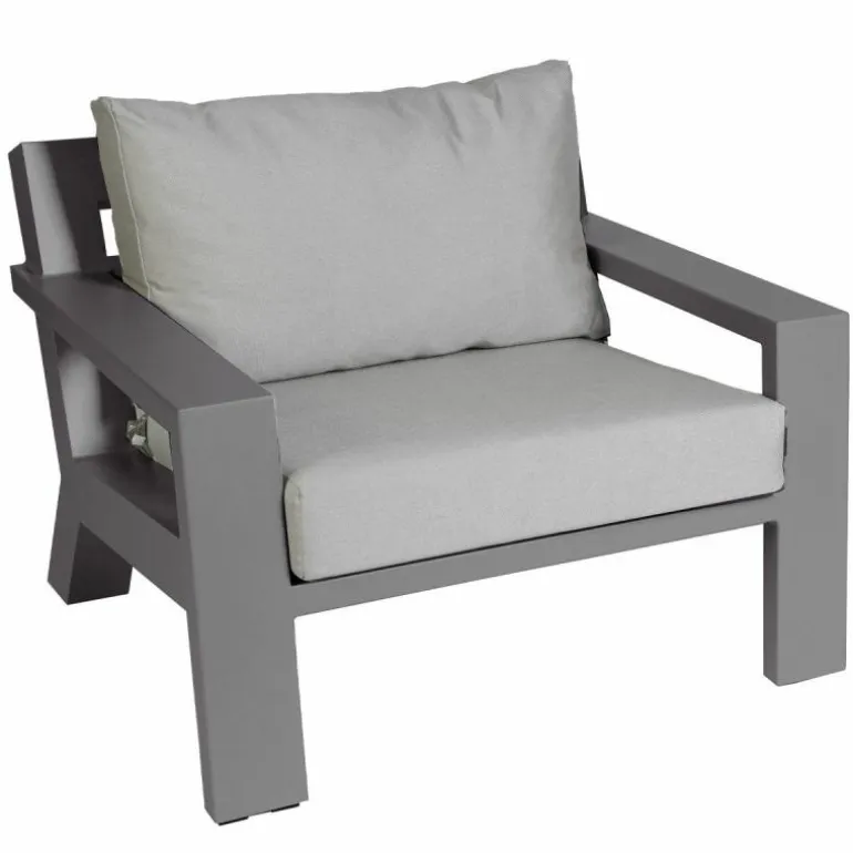Voorzien van zeer comfortabele kussens van Sunbrella stof in de kleur Caillou Cocoa heeft de fauteuil een zithoogte van 40 centimeter en is het een aangename toevoeging aan de loungehoek. De kussens zijn op aanvraag verkrijgbaar in andere kleuren en in een Prato stof. Neem hiervoor contact op met onze interieuradviseurs, zij nemen graag de andere mogelijkheden met u door.