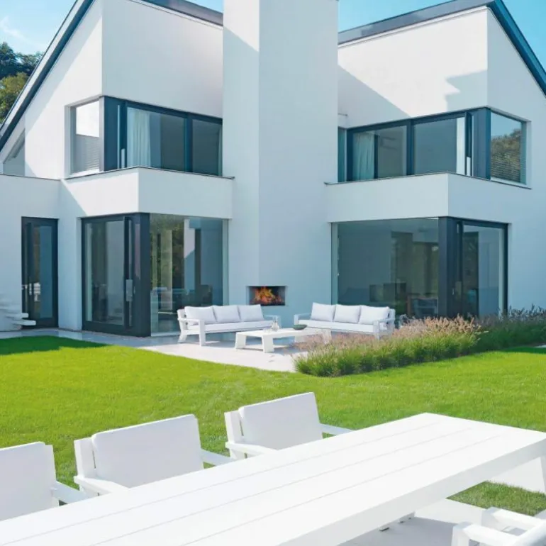 De Viking Salontafel is vervaardigd uit aluminium en is gepoedercoat in de kleuren wit of antraciet. In het productieproces wordt na het poedercoaten het geheel in een oven gebakken op 180 graden Celsius waardoor een duurzame en weerbestendige deklaag ontstaat. Die deklaag zorgt ervoor dat de tafel weinig onderhoud nodig heeft waardoor het design met een gerust hart het hele seizoen buiten kan blijven staan. r