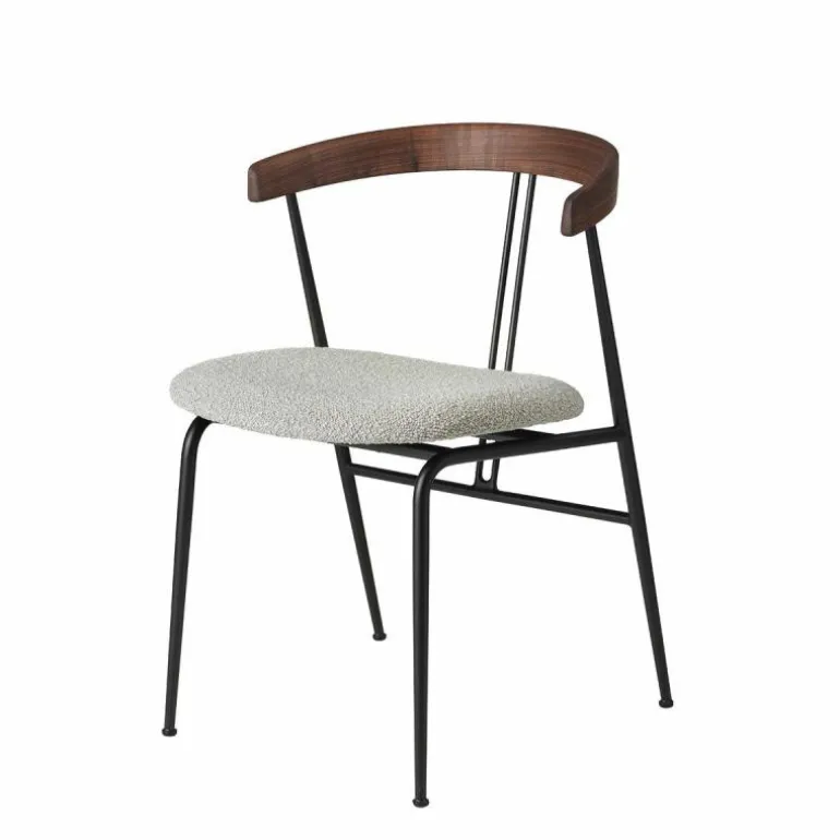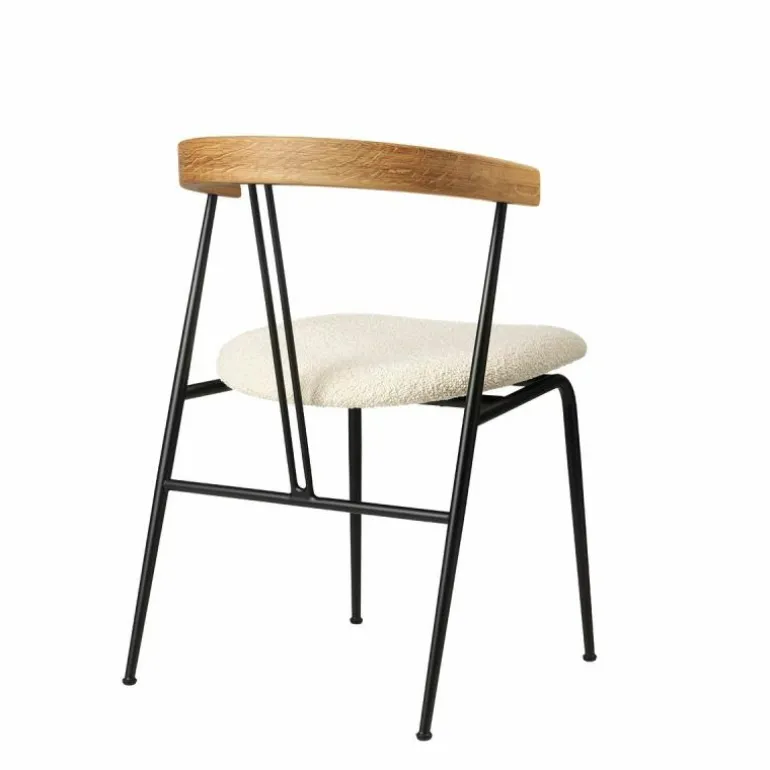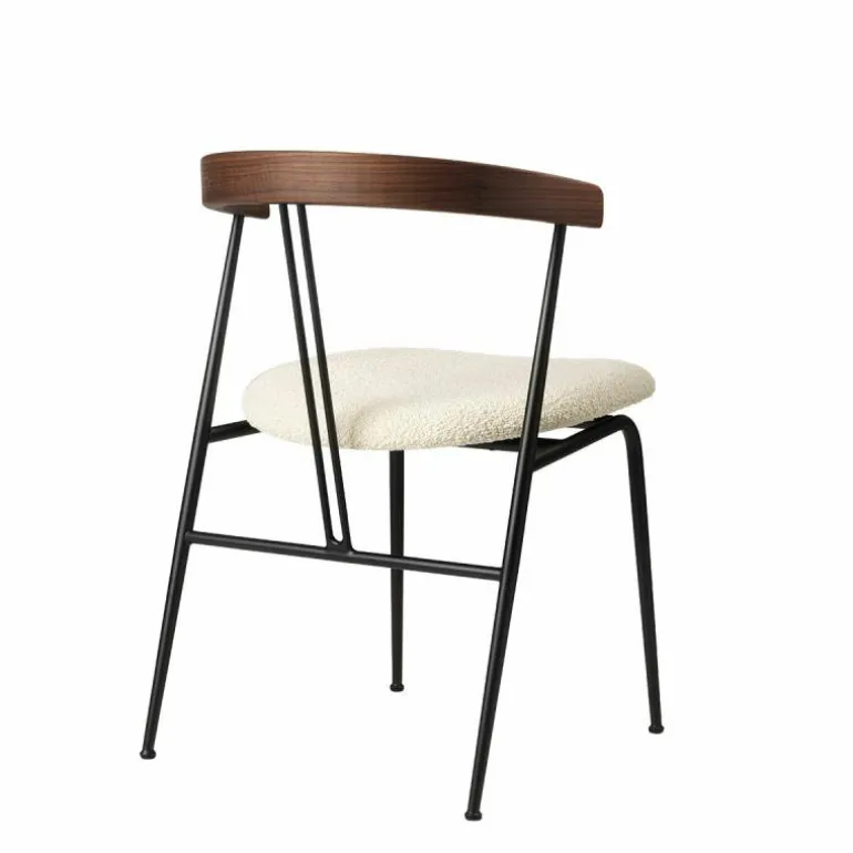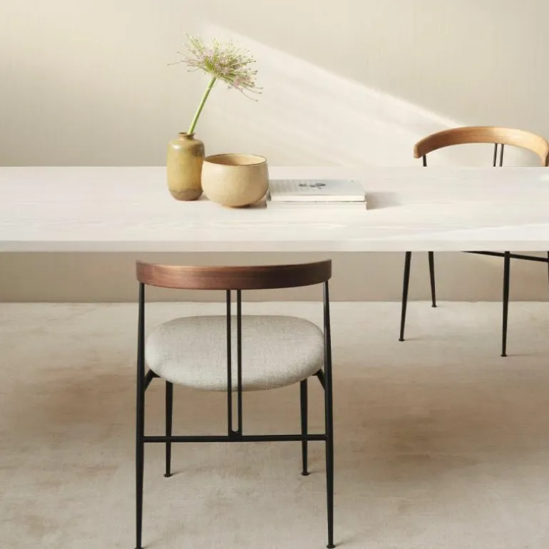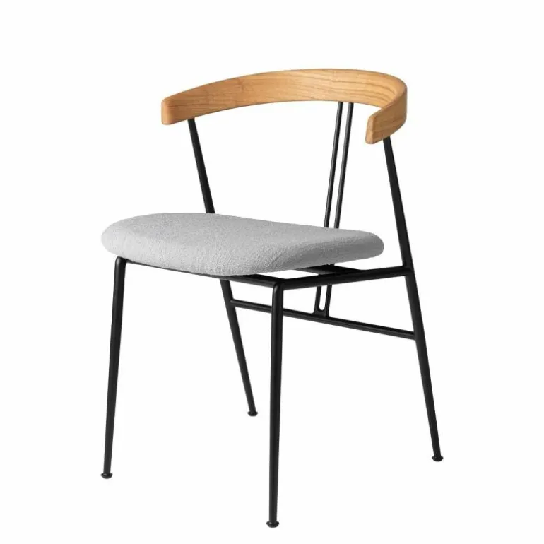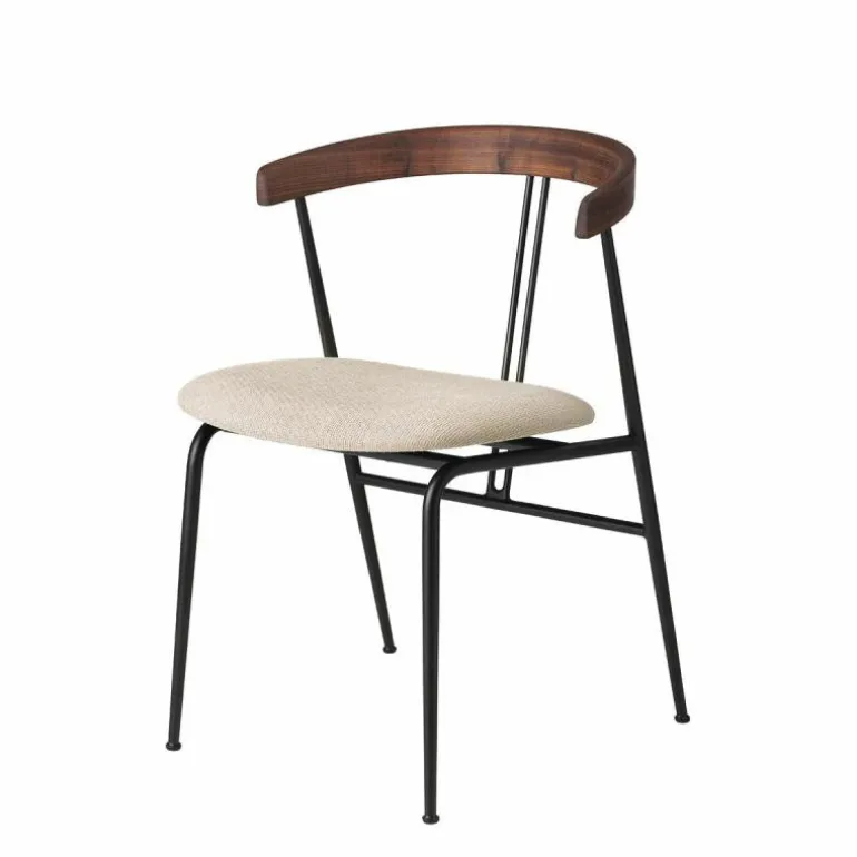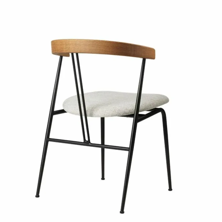 Dankzij de vorm van de rugleuning is de stoel de ideale combinatie van een eetkamerstoel en armstoel. De rugleuning heeft een fijne buiging, loopt net wat verder door en is voorzien van een elegante afronding. Deze subtiele omhelzing maakt de stoel zeer comfortabel waardoor u er lang op kunt zitten. De rugleuning is vervaardigd uit eiken- of walnoothout en de zitting is gestoffeerd. Het onderstel is gemaakt van staal en voorzien van een zwarte poedercoating. In totaal heeft u de keuze uit 9 mooie varianten. Zit uw ideale uitvoering er niet tussen? Neem dan contact op met onze interieurstylisten in de winkel, of kom even langs.