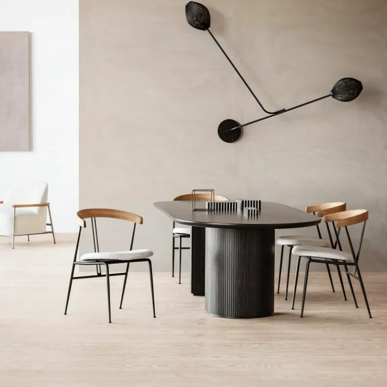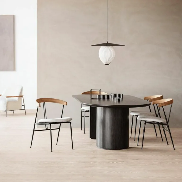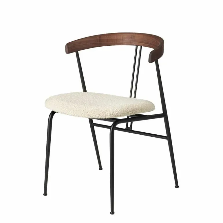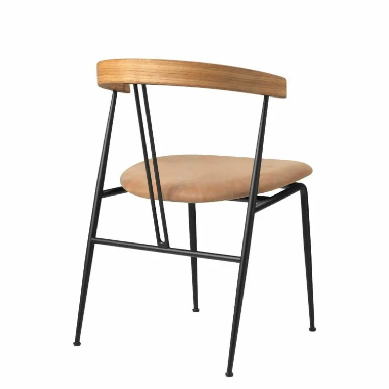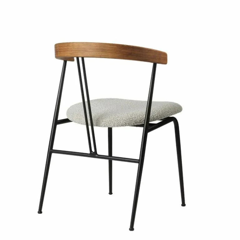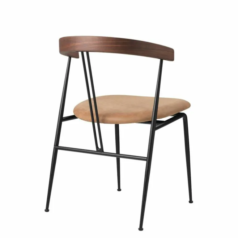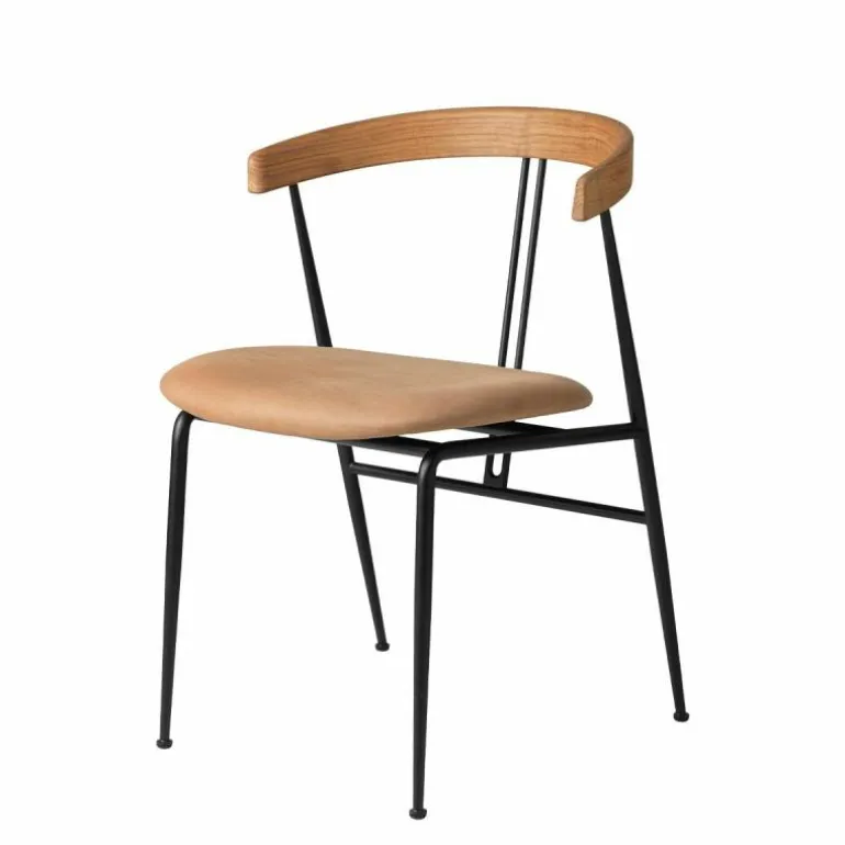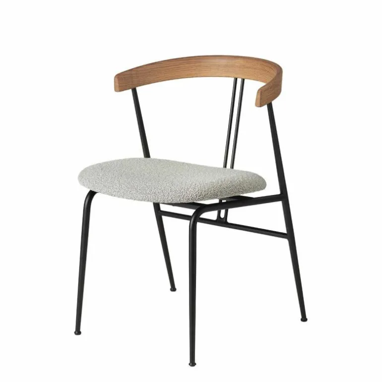 Dankzij de vorm van de rugleuning is de stoel de ideale combinatie van een eetkamerstoel en armstoel. De rugleuning heeft een fijne buiging, loopt net wat verder door en is voorzien van een elegante afronding. Deze subtiele omhelzing maakt de stoel zeer comfortabel waardoor u er lang op kunt zitten. De rugleuning is vervaardigd uit eiken- of walnoothout en de zitting is gestoffeerd. Het onderstel is gemaakt van staal en voorzien van een zwarte poedercoating. In totaal heeft u de keuze uit 9 mooie varianten. Zit uw ideale uitvoering er niet tussen? Neem dan contact op met onze interieurstylisten in de winkel, of kom even langs.