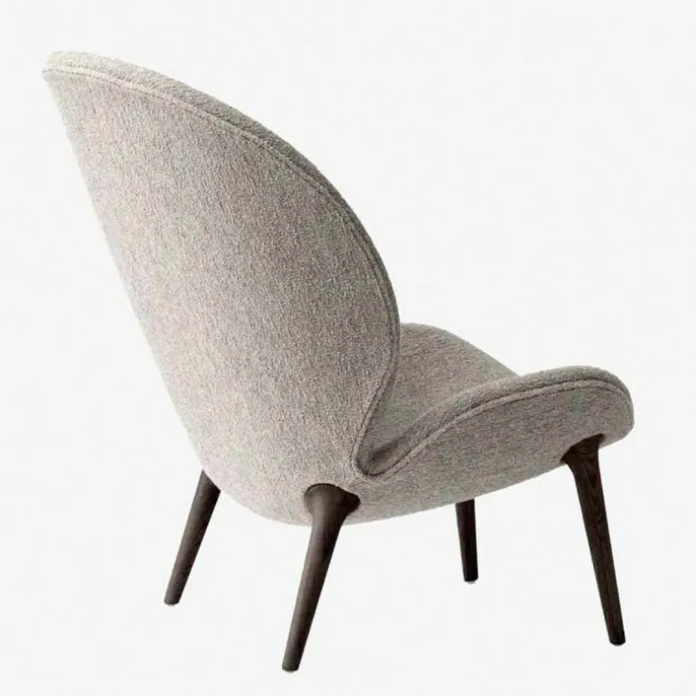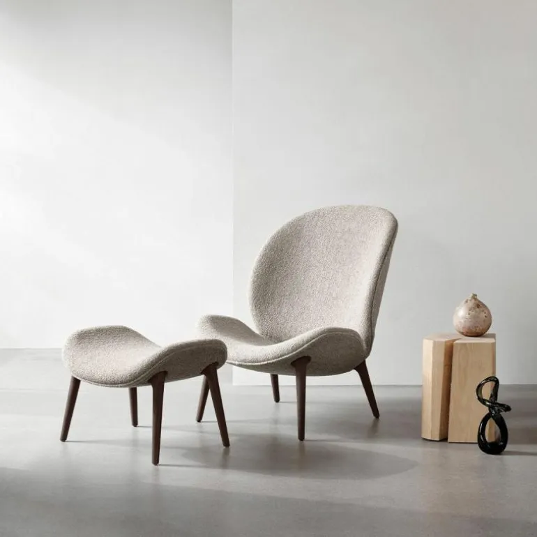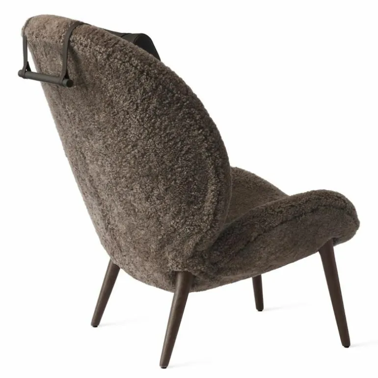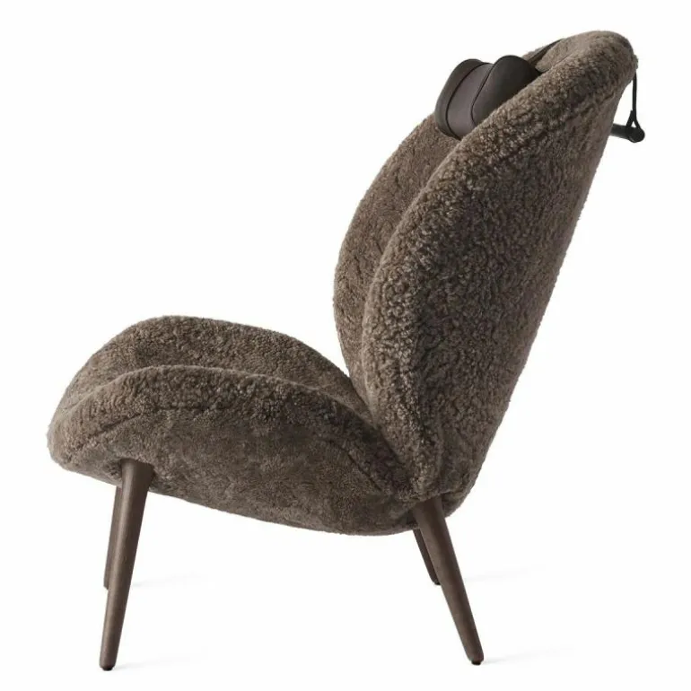 De vormgeving van de Vipp 466 Lodge Lounge Chair is als een opengeklapte schelp, die ondersteund wordt door elegante eikenhouten poten met een donkere of lichte afwerking. De zitschaal heeft een comfortabele laag schuim en is zo ontworpen om het lichaam licht te omhullen. De hoge rugleuning heeft een lichte flexibiliteit, waardoor de stoel ideaal is om lange avonden in te loungen of een klein dutje in te doen. Voor extra comfort is een bijpassend nekkussen direct bij te bestellen. Daarnaast is er in dezelfde stijl als de stoel ook een voetenbank beschikbaar.r