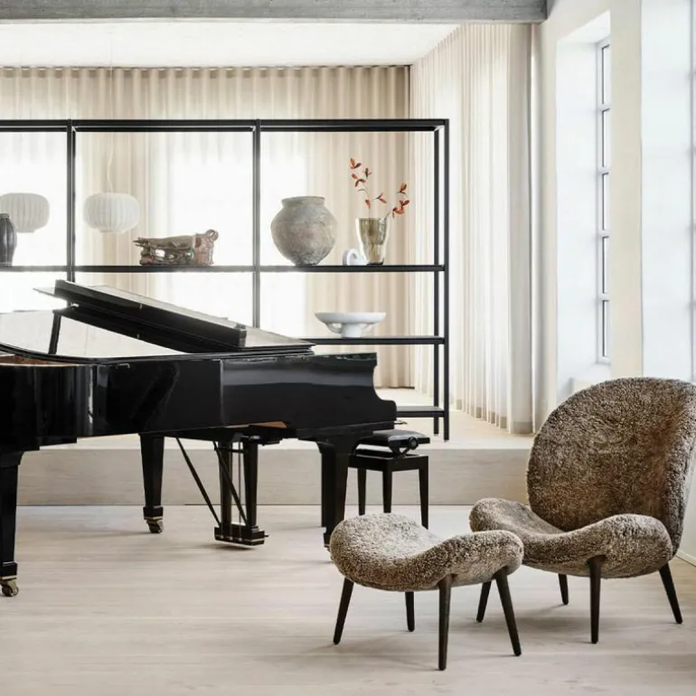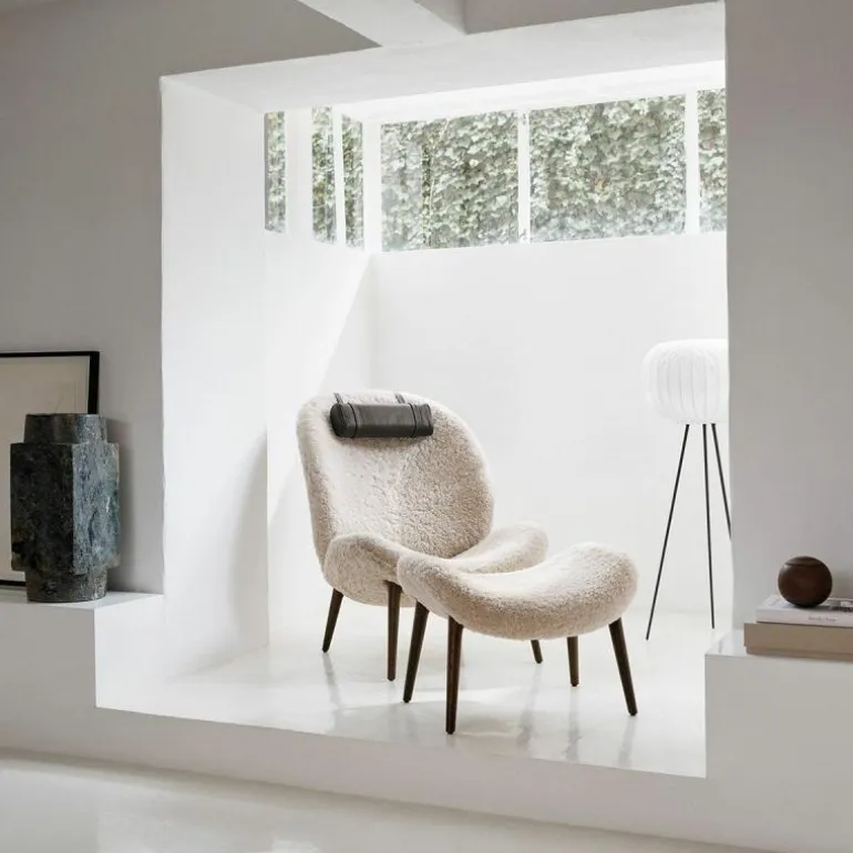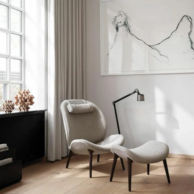 Het ontwerp van de Lodge meubels zit vol subtiele tegenstellingen die perfect met elkaar in balans zijn; zacht en hard, licht en donker, organisch en geometrisch. Het fijne textiel of leder dat gecombineerd wordt met houten poten voegt een nieuwe organische tactiliteit toe aan de industriële vormgeving van de Vipp collectie. r