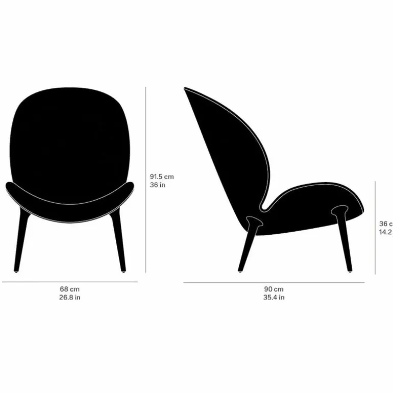 De Vipp 466 Lodge Lounge Chair heeft een breedte van 90 centimeter, een diepte van 68 centimeter en een hoogte van 91,5 centimeter. De zithoogte bedraagt 36 centimeter.