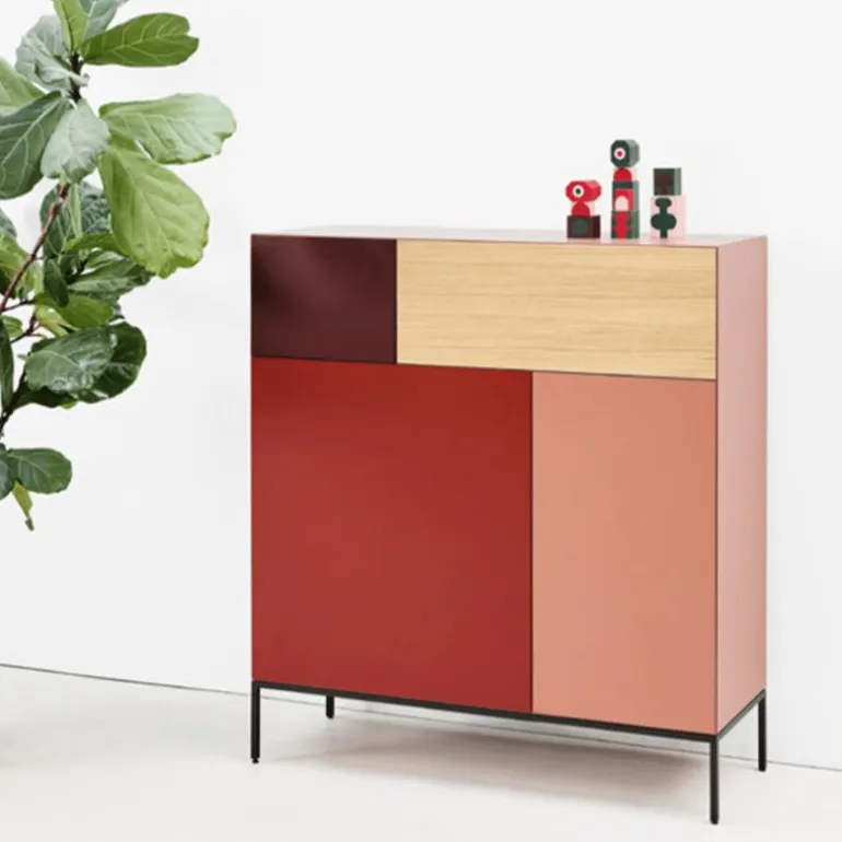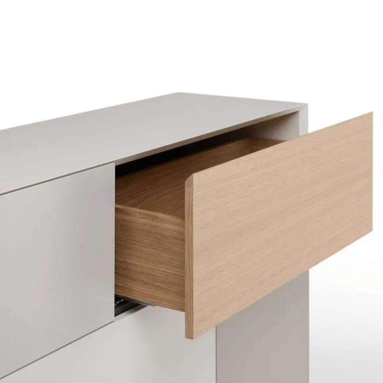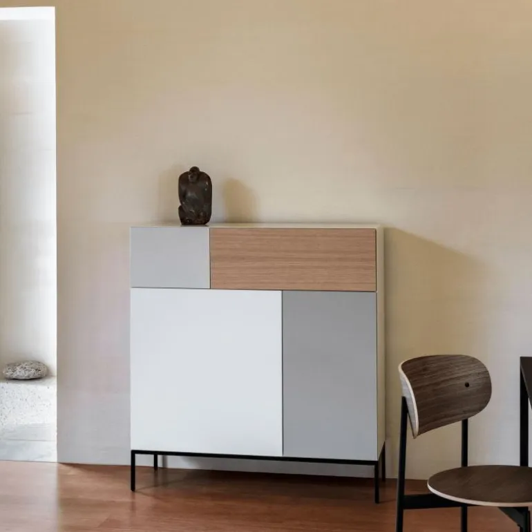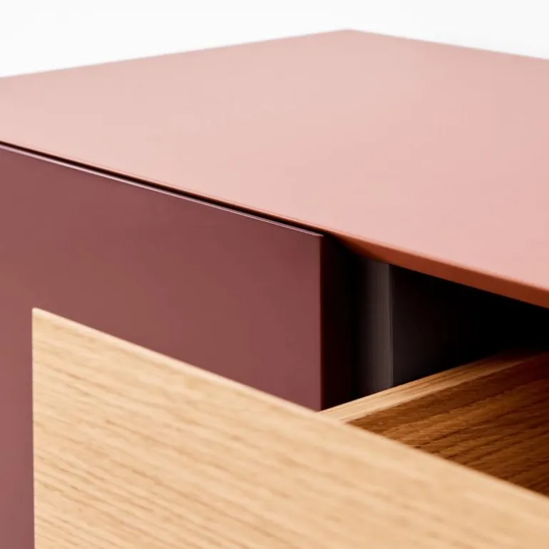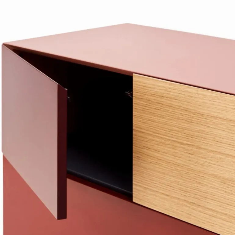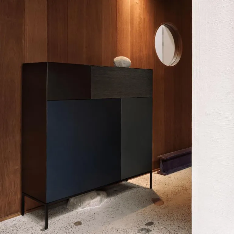 Het ontwerp van de Vision Selected 1 is gebaseerd op een diepgaand onderzoek naar de verhouding tussen vlakken, volumes en gebruiksdoeleinden. Niet enkel een meubelstuk, maar een architecturaal object dat rust brengt in de ruimte. De Vision Selected 1 is vervaardigd uit hoogwaardige, duurzame materialen die voldoen aan strenge kwaliteitsnormen. De afwerking in lak en eikenfineer getuigt van vakmanschap en oog voor detail, terwijl het zwart metalen frame van 18 centimeter hoogte een solide basis vormt die het ontwerp optilt naar een hoger niveau.