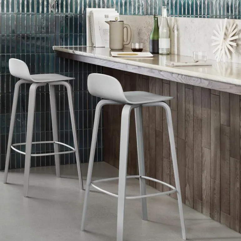 Naast deze uitvoering van de Visu Stool is de barkruk ook verkrijgbaar met een bekleding in Kvadrat stof of een bekleding van Camo leer.