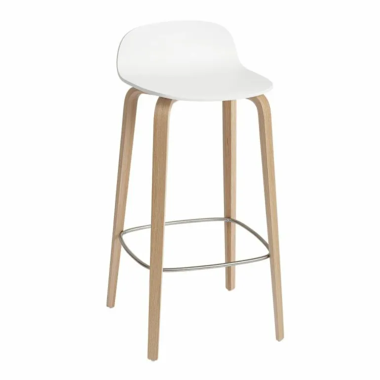 Materiaal: Eiken fineer voor de zitting, eikenhouten onderstel en een stalen voetsteun (eikenhouten uitvoering). Voor de gekleurde versies is gebruik gemaakt van een essenhouten onderstel (PU-gelakt), een zitting van essen fineer en een stalen voetsteun (PU-gelakt). r