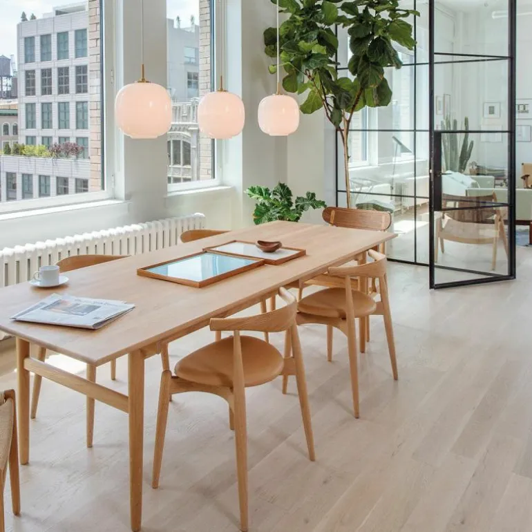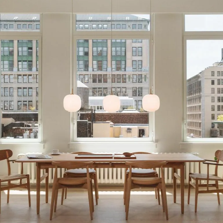 De VL45 Radiohus Hanglamp is een ontwerp van Louis Poulsen in samenwerking met de bekende Deense architect Vilhem Lauritzen. De lamp werd eind jaren ’40 ontworpen voor het Radiohuset-gebouw in Kopenhagen, een architecturaal ontwerp van Lauritzen waar destijds radio-uitzendingen werden verzorgd. In 2016 wordt de hanglamp opnieuw geïntroduceerd onder de naam VL45 Radiohus, als eerbetoon aan het gelijknamige gebouw. In deze heruitgave behoudt de lamp zijn oorspronkelijke ontwerp: een lampenkap van drie lagen mondgeblazen glas aan een ophanging van geborsteld messing. De lamp beschikt over een prachtige klassieke uitstraling die kamer voorzien van een luxueuze en rustige sfeer.r