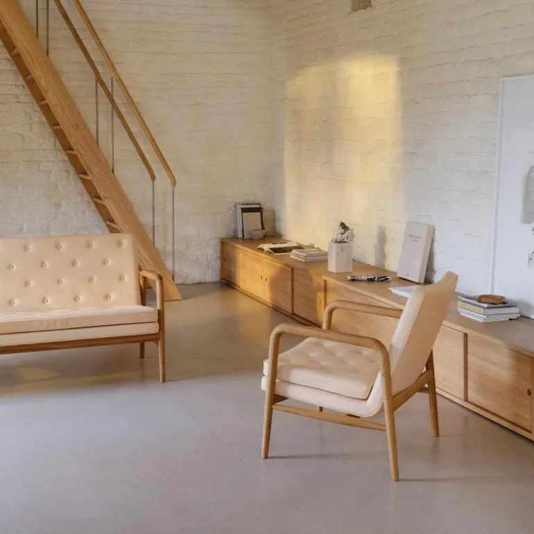 De VLA77 Foyer Bank bestaat uit een massief eikenhouten frame met een geoliede afwerking. Bovendien is het hoogwaardige hout met de hand gepolijst om zichtbare overgangen te voorkomen. De bank is verrijkt met een royaal zit- en rugkussen welke beide voorzien zijn van handgemaakte knopen. Hierdoor ademt het eenvoudige ontwerp toch één en al luxe. Vanwege de vele bekledingsmogelijkheden heeft MisterDesign één uitvoering geselecteerd welke online direct verkrijgbaar is. Deze variant is zorgvuldig bekleed met Sif 90 leder.