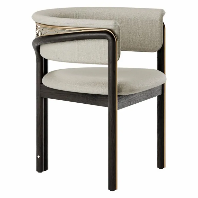 De stoel is vervaardigd uit zorgvuldig geselecteerde materialen die bijdragen aan duurzaamheid en stabiliteit. De metalen onderdelen zorgen voor structurele sterkte, terwijl de zitting en rugleuning zijn afgewerkt met hoogwaardige bekleding die comfort biedt bij langdurig gebruik. De gebruikte materialen zijn bestand tegen dagelijks gebruik en behouden hun kwaliteit en uitstraling door de jaren heen. De afwerking is subtiel en nauwkeurig uitgevoerd, waardoor de stoel geschikt is voor diverse interieurstijlen, van moderne woonruimtes tot zakelijke omgevingen.