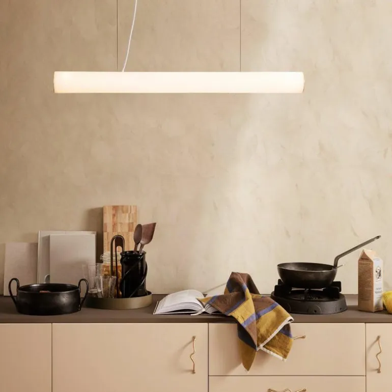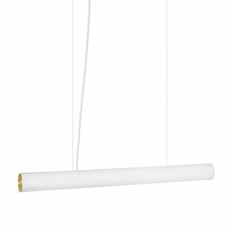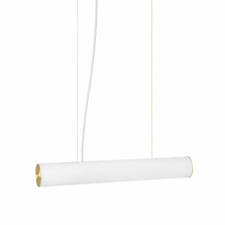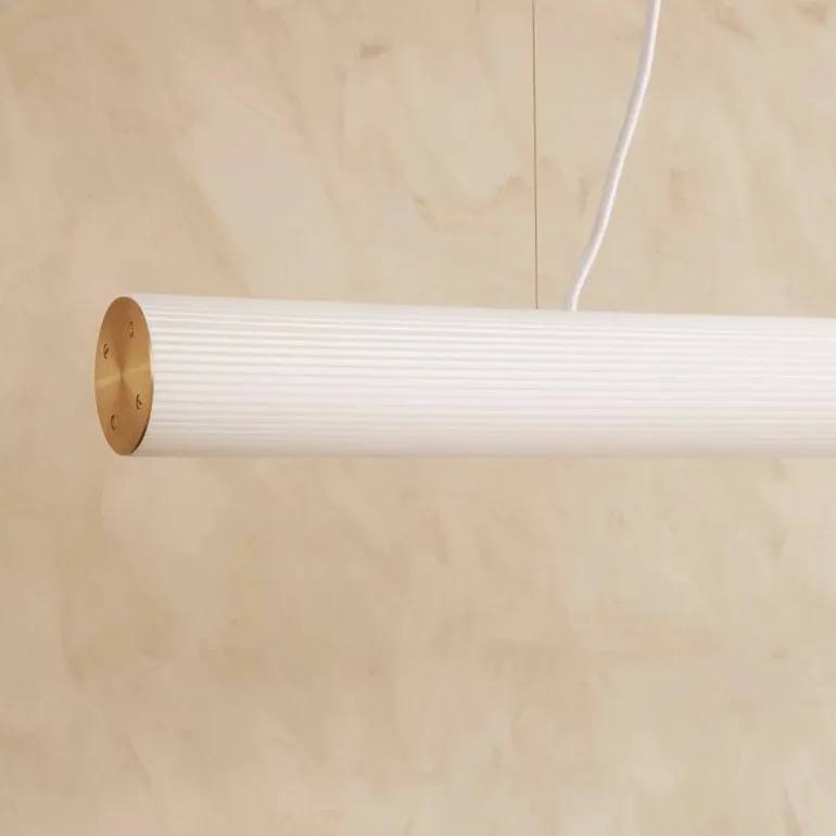 De hanglamp is gemaakt van mondgeblazen opaal glas met een geribbeld oppervlak. Beide zijdes zijn afgesloten met een messing of stalen onderdeel. Daarnaast heeft u de keuze uit twee afmetingen. De grootste afmeting is 100 centimeter breed en de kleinere afmeting is 60 centimeter breed. Beide afmetingen hebben een diameter van 8,4 centimeter. In totaal heeft u de keuze uit vier mooie varianten. Het design is dimbaar met een bijgeleverde afstandsbediening waarmee u de lamp tevens ook aan en uit kunt zetten. De Vuelta Lamp is ook verkrijgbaar in een wandlamp. Neem hiervoor een kijkje in de productfamilie.