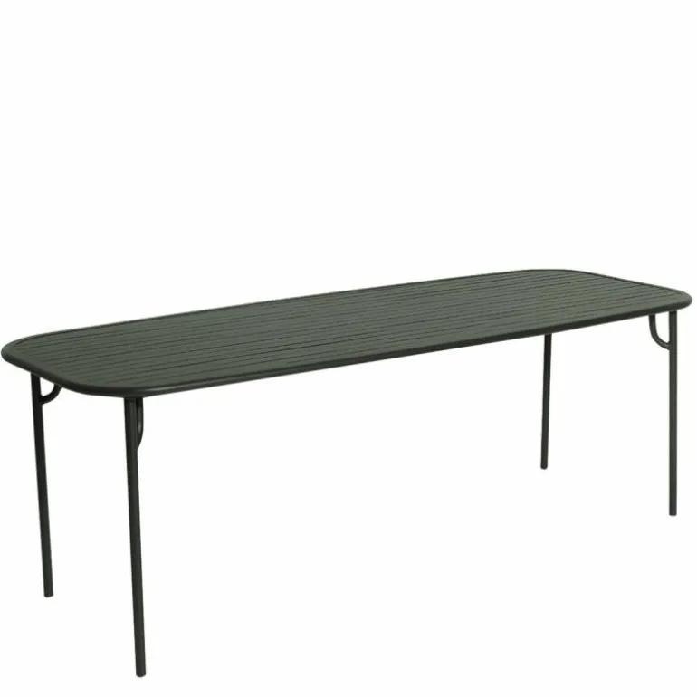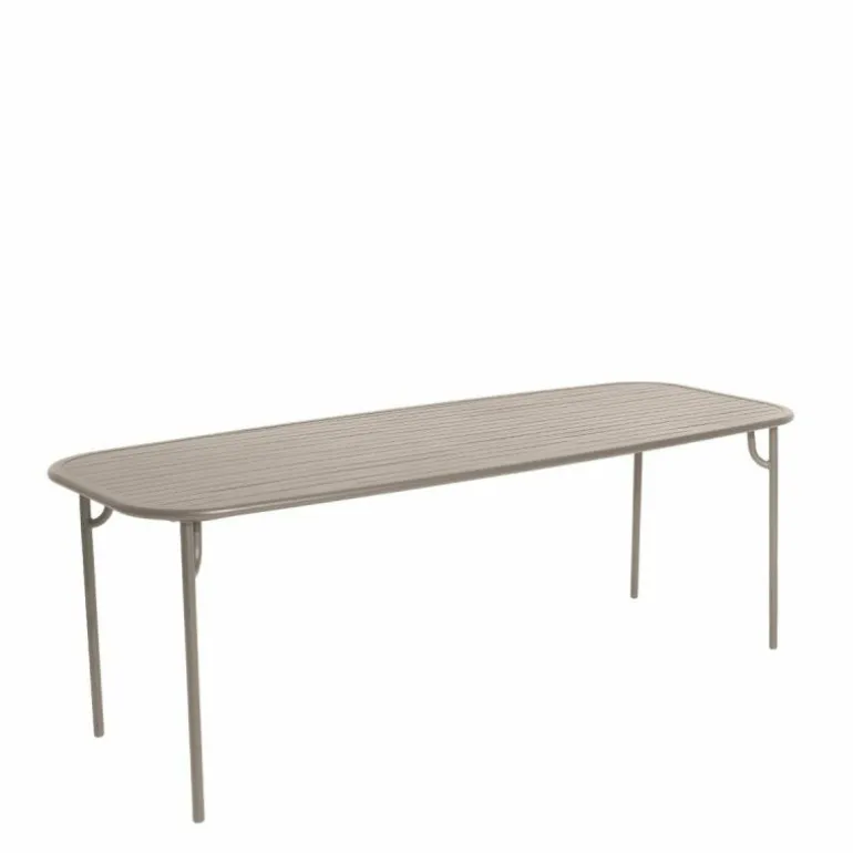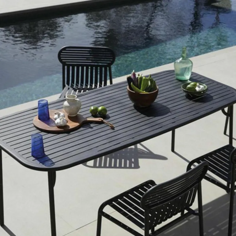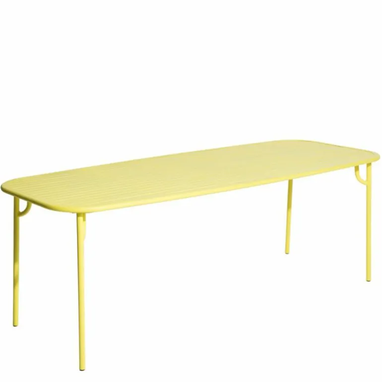 De Petite Friture Week-end Eettafel Rechthoek is een ontwerp van Studio BrichetZiegler. Deze eettafel is onderdeel van de Week-end collectie. Deze collectie bestaat uit verschillende tuinmeubelen verkrijgbaar in trendy kleuren. Alle meubelen zijn ontworpen met veel oog voor functionaliteit en materiaal. Zo is de tafel dankzij het gekozen materiaal erg onderhoudsvriendelijk en zult u er lang plezier van hebben. De ronde hoeken van de eettafel geven het design in combinatie met de strakke lijnen een grafische look. Dankzij de variatie aan kleuren zal er voor iedere buitenruimte een geschikte variant tussen zitten!r