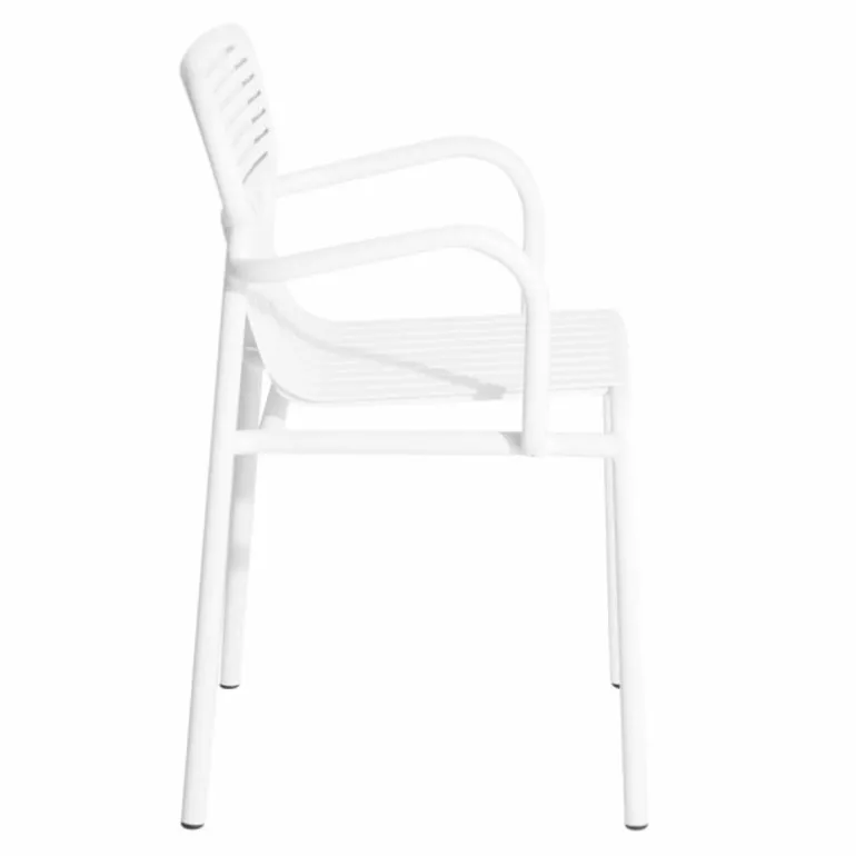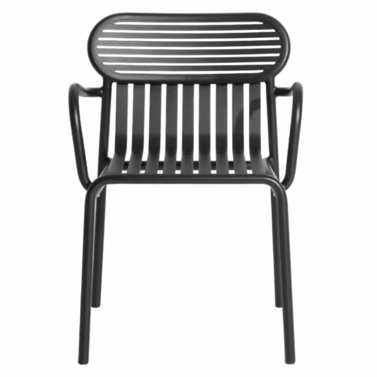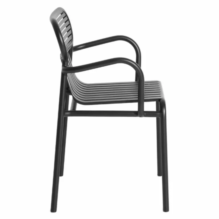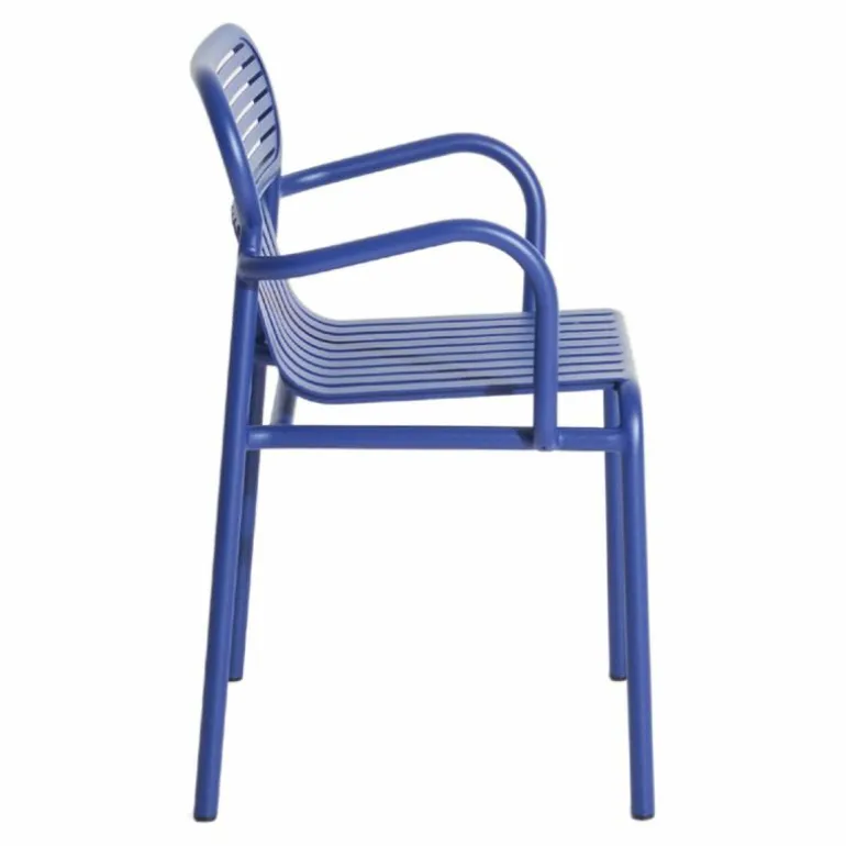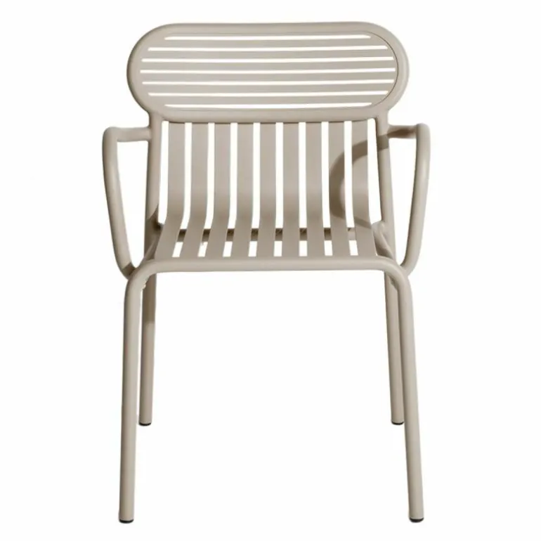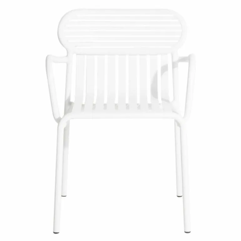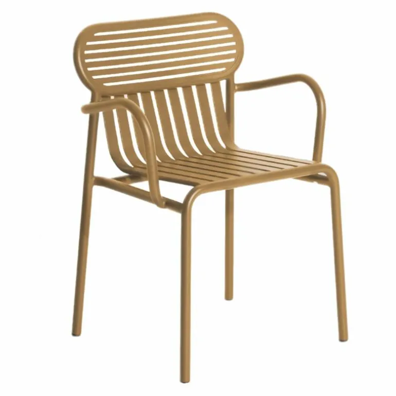 De Petite Friture Week-end Stoel Met Armleuning is een ontwerp van Studio BrichetZiegler. Deze stoel is onderdeel van de Week-end serie die bestaat uit verschillende tuinmeubelen verkrijgbaar in trendy kleurtjes. Alle meubelen zijn ontworpen met veel oog voor functionaliteit en materiaal. Zo is de stoel stapelbaar en hierdoor makkelijker op te bergen. Daarnaast is de stoel door het gekozen materiaal onderhoudsvriendelijk en lichtgewicht. De ronde vormen van de metalen stoel geven het design in combinatie met de horizontale en verticale lijnen een grafische look. Dankzij de variatie aan kleuren zal er voor iedere buitenruimte een geschikte variant tussen zitten!r