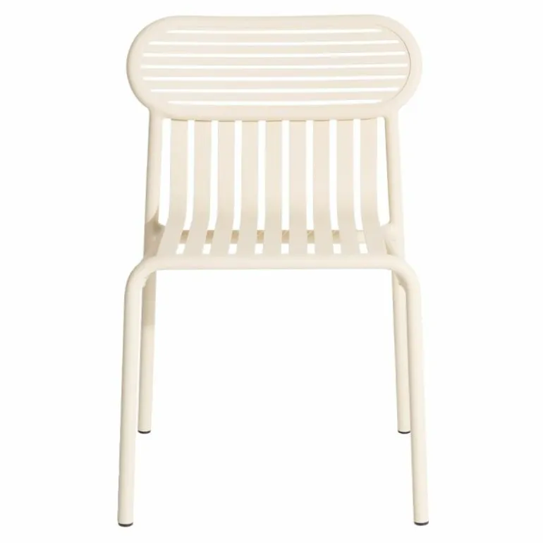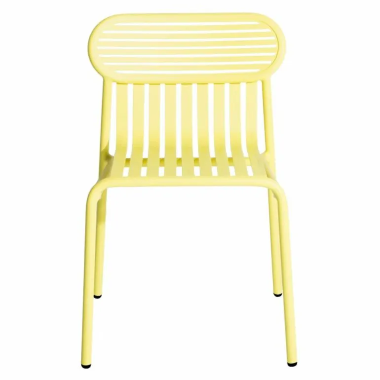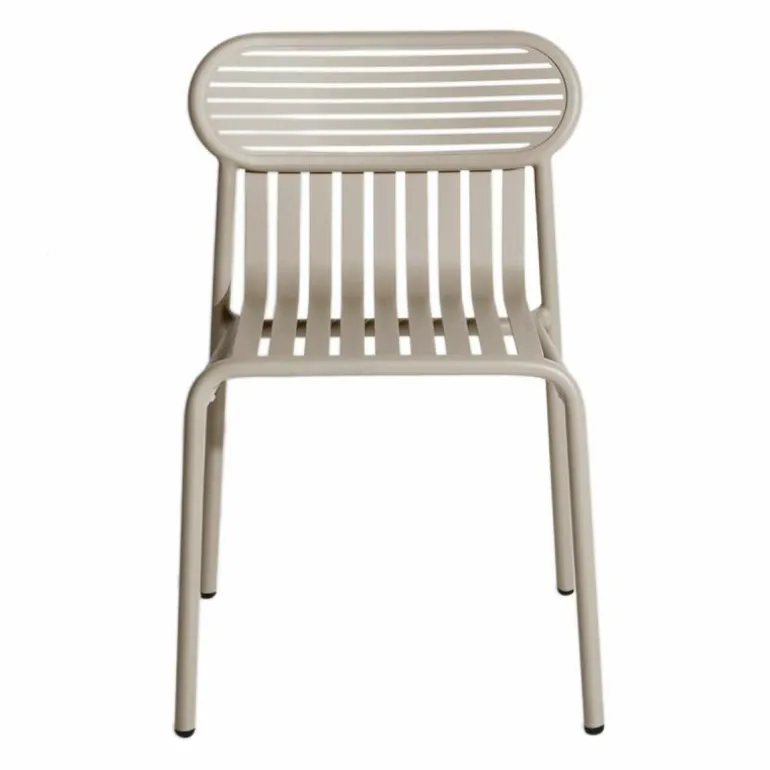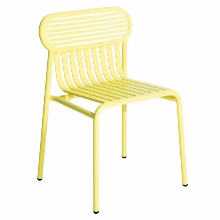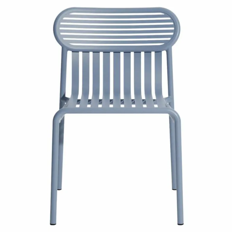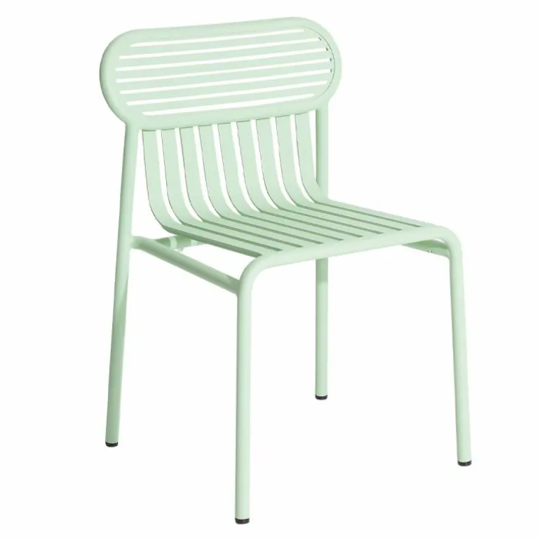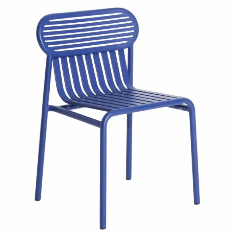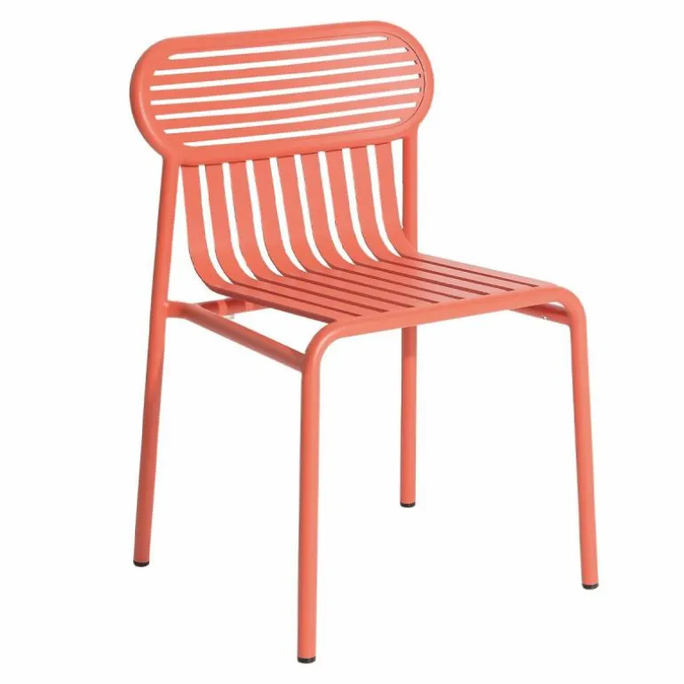 De Petite Friture Week-end Stoel Zonder Armleuning is een ontwerp van Studio BrichetZiegler. Deze stoel is onderdeel van de Week-end collectie. Deze collectie bestaat uit verschillende tuinmeubelen verkrijgbaar in trendy kleuren. Alle meubelen zijn ontworpen met veel oog voor functionaliteit en materiaal. Zo is de stoel stapelbaar en hierdoor makkelijker op te bergen. Daarnaast is de stoel door het gekozen materiaal onderhoudsvriendelijk en lichtgewicht. De ronde vormen van de metalen stoel geven het design in combinatie met de horizontale en verticale lijnen een grafische look. Dankzij de variatie aan kleuren zal er voor iedere buitenruimte een geschikte variant tussen zitten!r