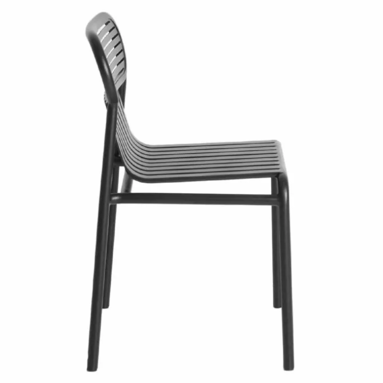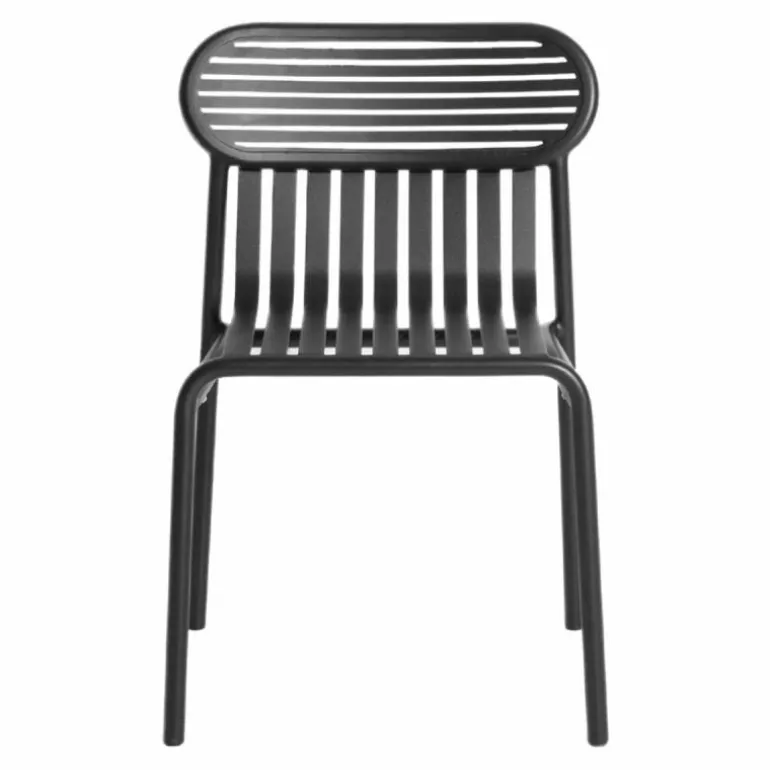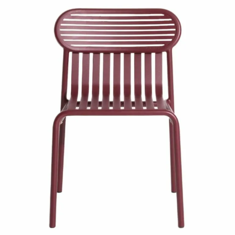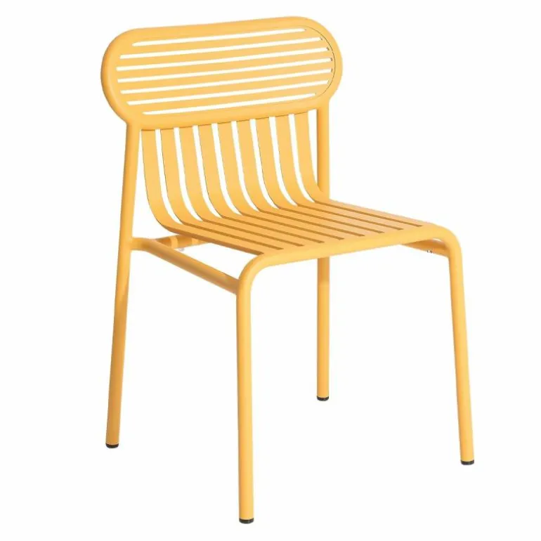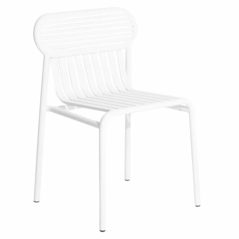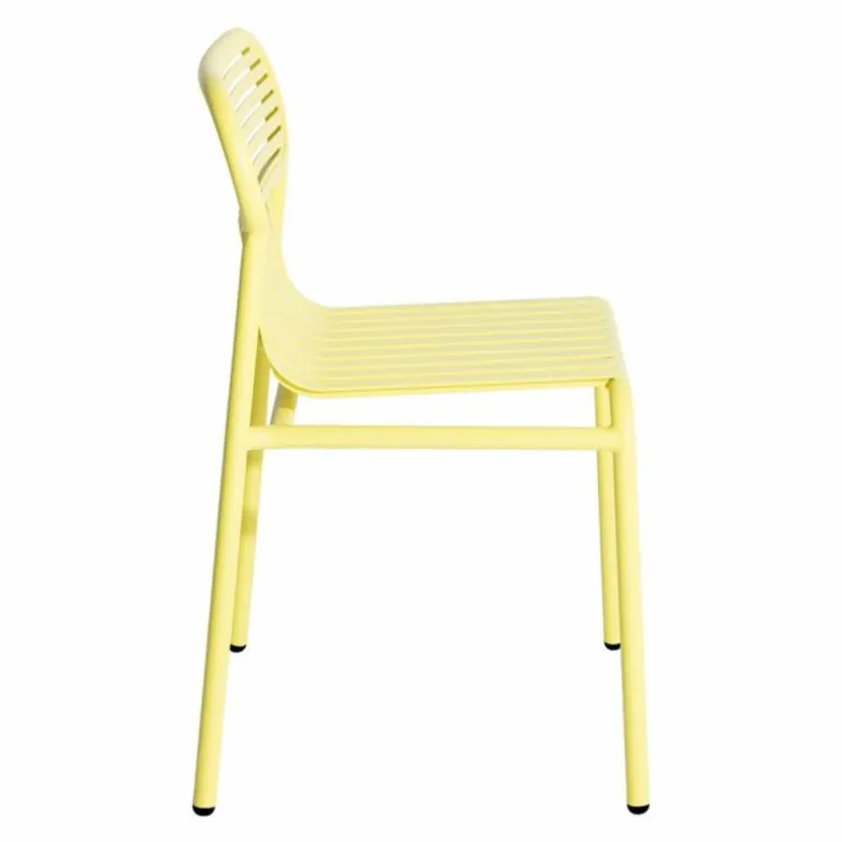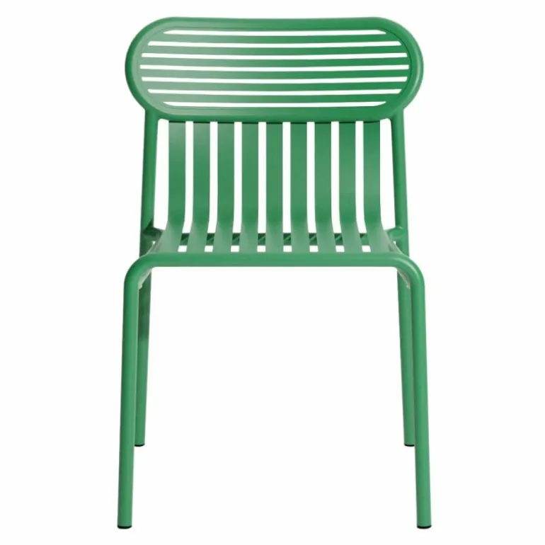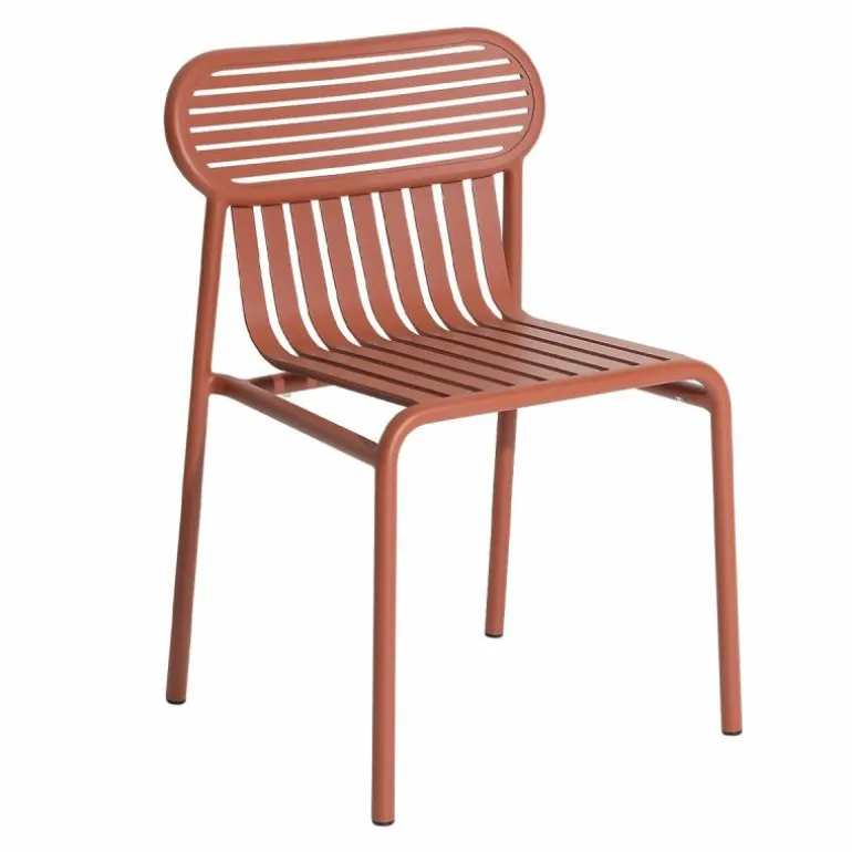 De Petite Friture Week-end Stoel Zonder Armleuning is een ontwerp van Studio BrichetZiegler. Deze stoel is onderdeel van de Week-end collectie. Deze collectie bestaat uit verschillende tuinmeubelen verkrijgbaar in trendy kleuren. Alle meubelen zijn ontworpen met veel oog voor functionaliteit en materiaal. Zo is de stoel stapelbaar en hierdoor makkelijker op te bergen. Daarnaast is de stoel door het gekozen materiaal onderhoudsvriendelijk en lichtgewicht. De ronde vormen van de metalen stoel geven het design in combinatie met de horizontale en verticale lijnen een grafische look. Dankzij de variatie aan kleuren zal er voor iedere buitenruimte een geschikte variant tussen zitten!r