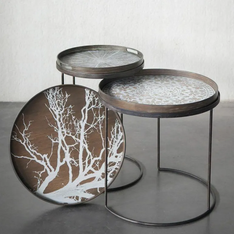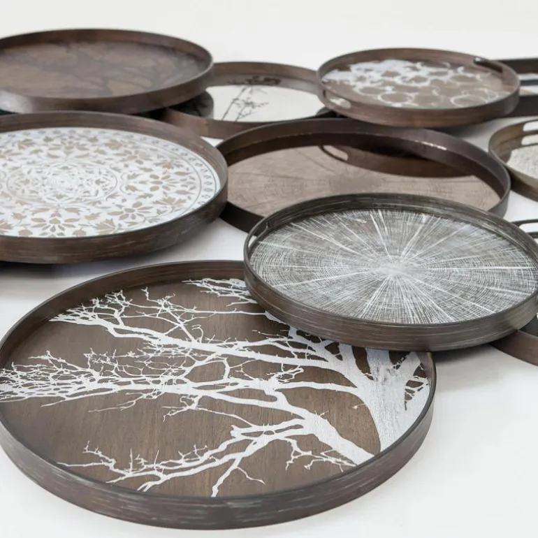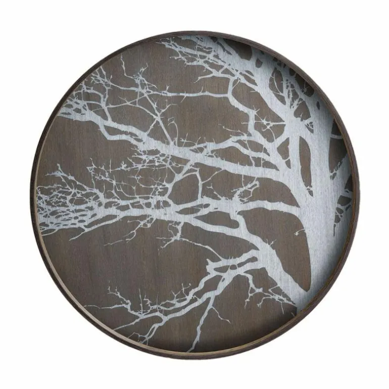 Het Ethnicraft White Tree Dienblad is een ontwerp van Dawn Sweitzer. Het White Tree Dienblad hoort bij de Classic serie, een serie die ontworpen is rondom de reizen van Dawn Sweitzer en de prachtige natuur die de aarde ons te bieden heeft. Dawn Sweitzer heeft al die pracht en praal vertaald in weelderige patronen en een zacht kleurenpalet. Dit dienblad is een ultieme ode aan de natuur, want op het houten blad staat letterlijk een prachtige boom afgebeeld. De combinatie van de frisse witte boom en het warme hout maken dit een perfecte accessoire voor ieder interieur!Het blad is gemaakt van multiplex en heeft een drijfhout-achtige look. Het geeft een karakteristieke uitstraling, die zeker past bij een bijzonder merk als Ethnicraft. De rand van het dienblad is 4 centimeter hoog en het blad zelf heeft een diameter van 61 centimeter. Doordat dit dienblad met de hand gemaakt wordt kan het voorkomen dat er enkele kleine imperfecties zichtbaar zijn. Dat is helemaal niet erg, want deze imperfecties maken het dienblad extra uniek en karakteristiek! Het dienblad wordt gemaakt in de werkplaats van Ethnicraft in Indonesië. Ook wordt ieder product hier voorzien van een handtekening, om de authenticiteit te garanderen.Bij dit dienblad is een metalen ophangsysteem voor aan de muur mee te bestellen. Meer weten over het voorgestelde ophangsysteem? Bekijk alle ophangsystemen en de bijbehorende montagehandleidingen op de pagina voor Ethnicraft ophangsystemen.