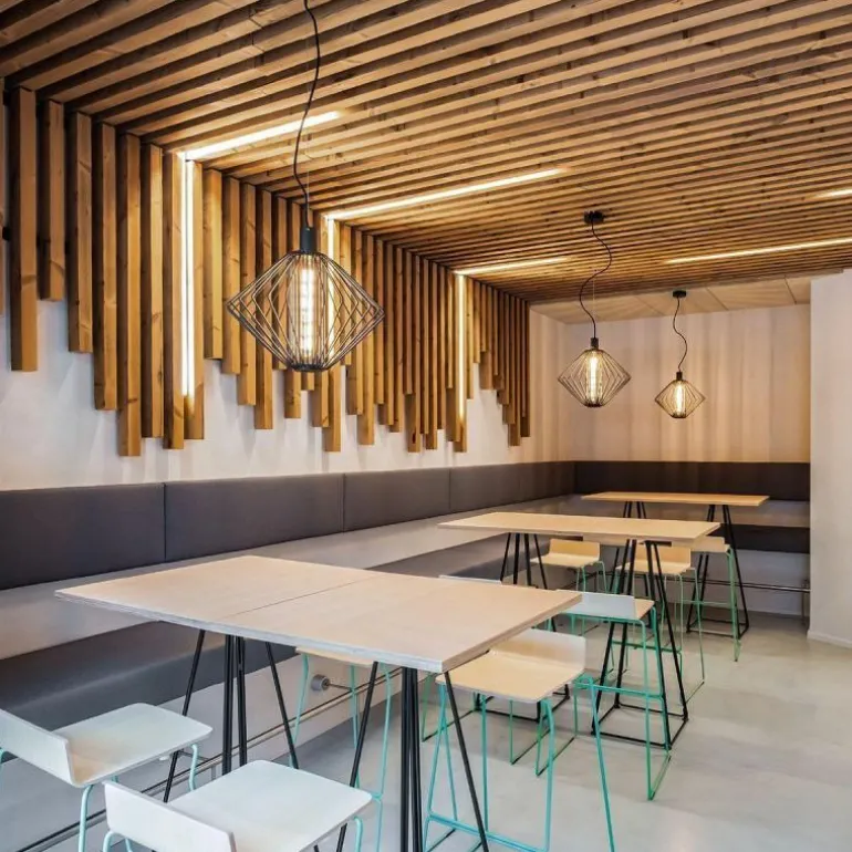 Het design van de Wiro Diamond wordt gekenmerkt door de dunne metalen cilinders die samen een nieuw geheel vormen. Zoals de naam doet vermoeden, vormen deze cilinders samen een diamantachtige lampenkap. Door het open karakter is de lichtbron altijd zichtbaar en schijnt de lamp een direct licht in alle richtingen. Wanneer de lamp dichtbij een wand hangt, zorgt het frame bovendien voor een spectaculair licht- en schaduwspel.r
