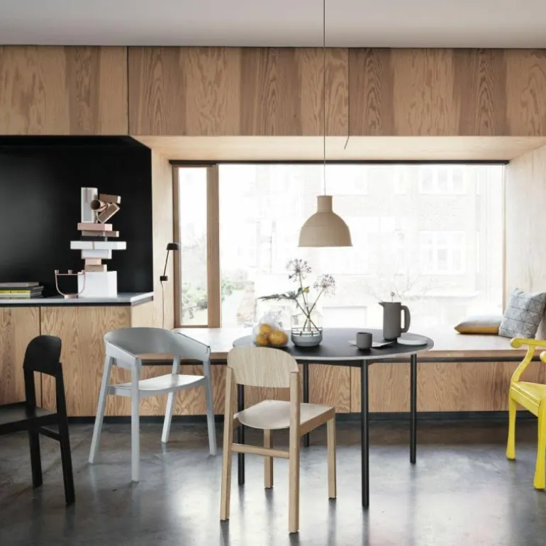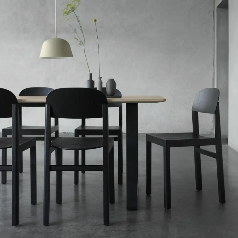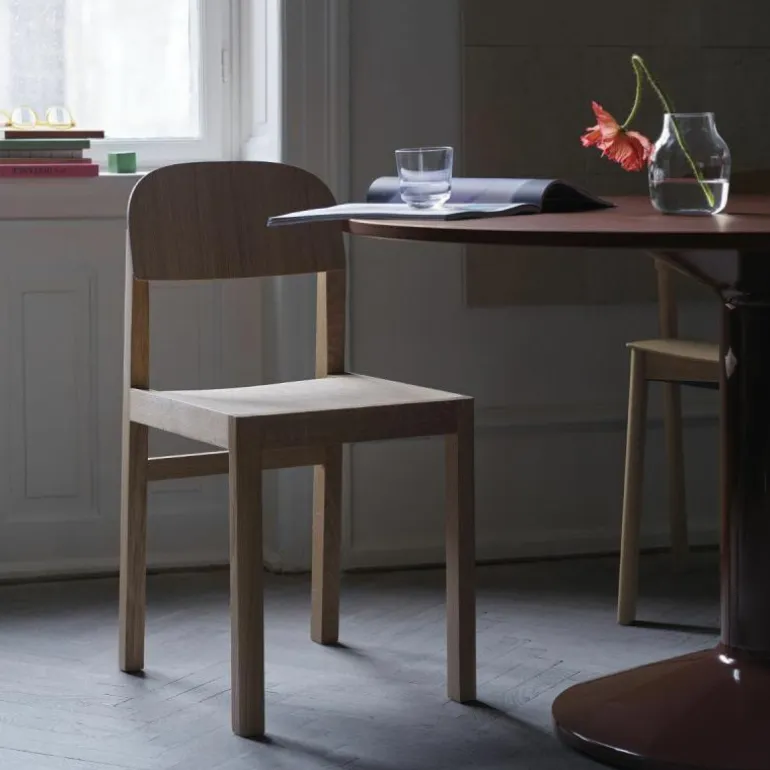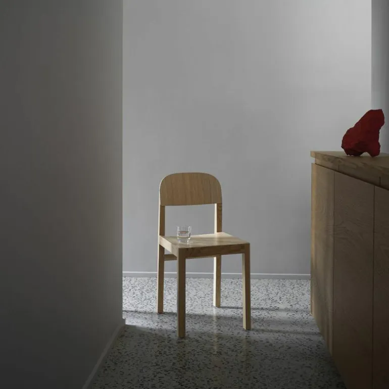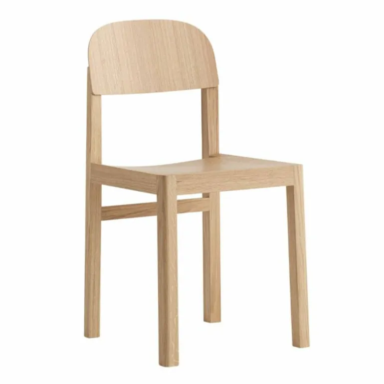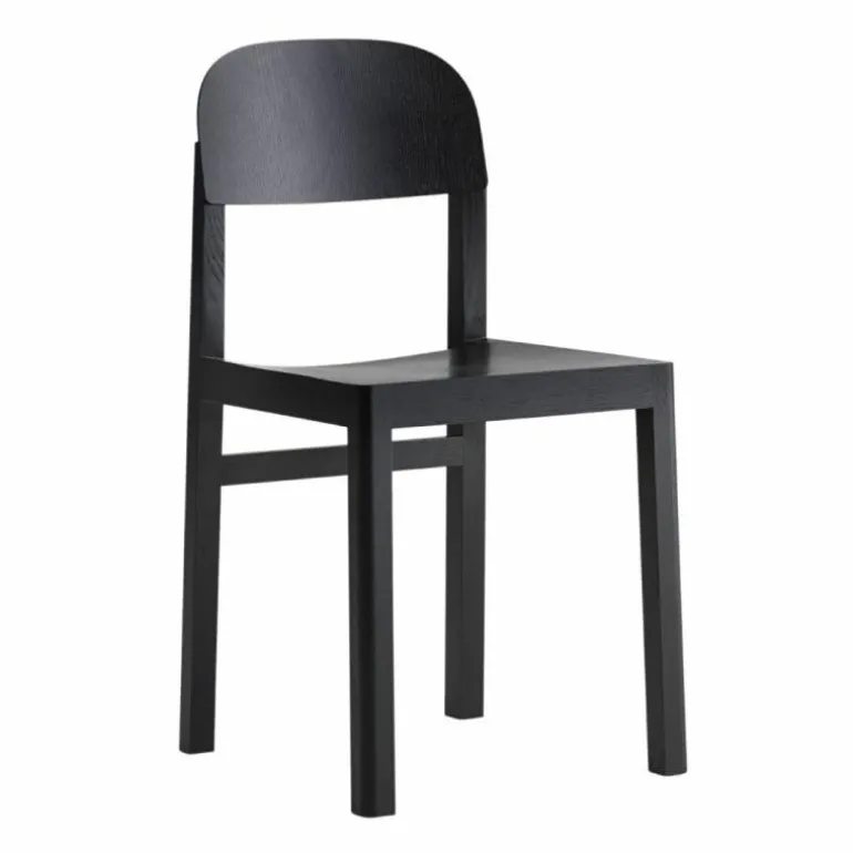 De Muuto Workshop Stoel is een ontwerp van Cecilie Manz. Designer Cecilie Manz is van mening dat ideeën niet zomaar ontstaan, maar tot je komen door te tekenen en experimenteren. Dat is een soms een chaotisch proces. Tussen een hoop materialen en proefmodellen vond Cecilie uiteindelijk de speld in de hooiberg: de Workshop Stoel. Deze stoel blinkt uit in zijn eenvoud. Er wordt een subtiel contrast gevormd tussen de rechte, scherpe randjes van het frame en de ronde rugleuning. Het frame en de poten zijn gemaakt van massief hout, eiken of oregon pine, waarin de houtnerf mooi zichtbaar is. De zitting en rugleuning zijn gemaakt van houtfineer. De stoel is verkrijgbaar in drie varianten: zwart gelakt eiken, mat gelakt eiken en mat gelakt oregon pine. Oregon pine is een zachtere houtsoort en is daarom minder slijtvast dan eiken. De kleur van het hout verandert met de tijd, afhankelijk van de mate van blootstelling aan licht.r