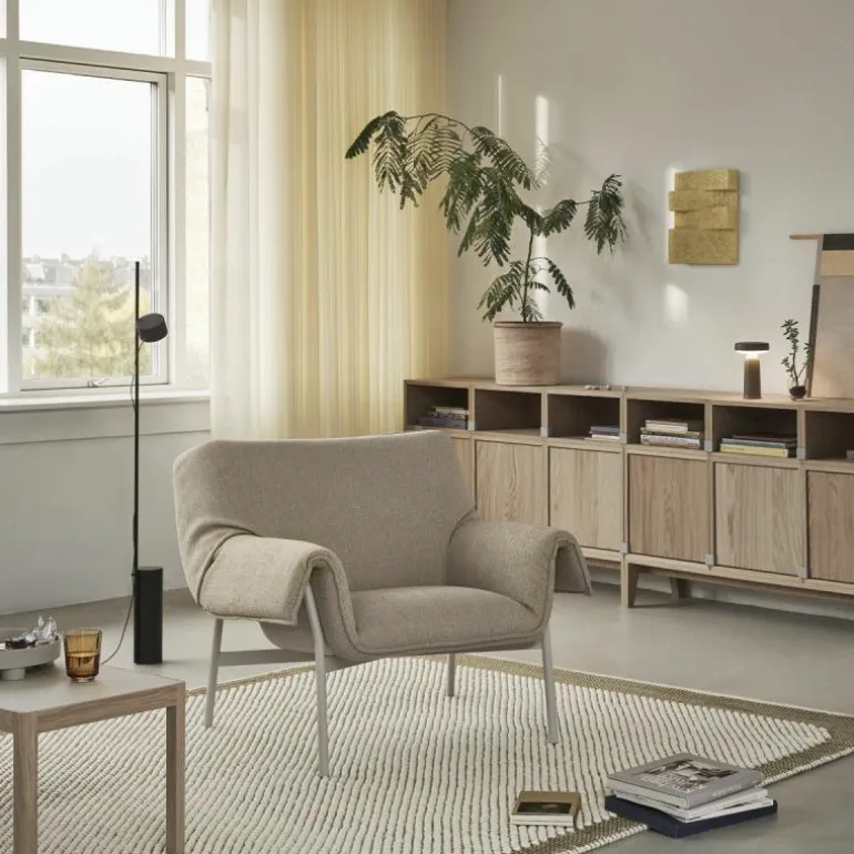 De zitschaal van de Wrap Fauteuil is volledig opgevuld met geperst vilt. De kuip is bekleed met meerdere lagen schuim en watten wat zorgt voor het hoge zitcomfort. Het onderstel is gemaakt van een gepoedercoat staal en is voorzien van kunststof glijders. De diepte van de stoel is 91 centimeter, de breedte is 91,3 centimeter, de totale hoogte is 81,5 centimeter en de zithoogte bedraagt 44,5 centimeter. r