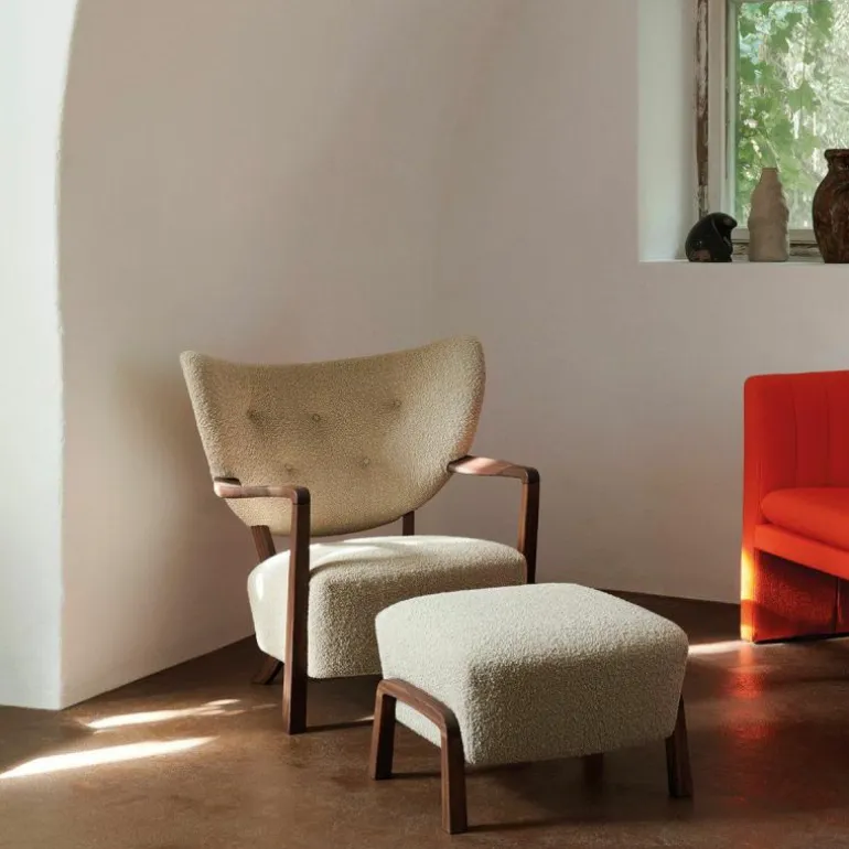 De &Tradition Wulff ATD3 Poef is een ontwerp van &Tradition. Gebaseerd op de kenmerkende Wulff-fauteuil, een stoel waarvan de vorm een eerbetoon is aan de handgemaakte ontwerpen van de jaren ’30. &Tradition vond dat hierbij een soortgelijke poef niet kon ontbreken en zo is de Wulff ATD3 Poef ontstaan. Of u hem nu als voetensteun voor de Wulff-stoel gebruikt of als aparte loungekruk, het ultieme doel is ontspanning. r
