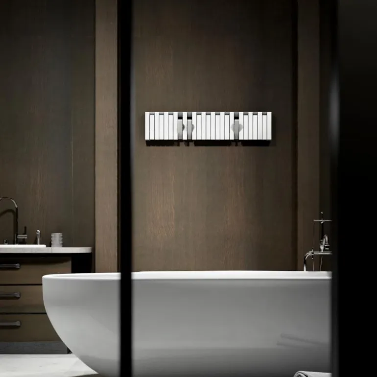 De Xylo is een compacte variant uit de Piano Coat Rack serie, die in 2012 de AZ Awards in Toronto won voor “Best Design Furniture”. Door het formaat en de uitklapbare haken is de Xylo uitermate geschikt voor kleinere ruimtes. De wandkapstok past in de hal maar kan ook goed toegepast worden in de badkamer, slaapkamer en keuken. r