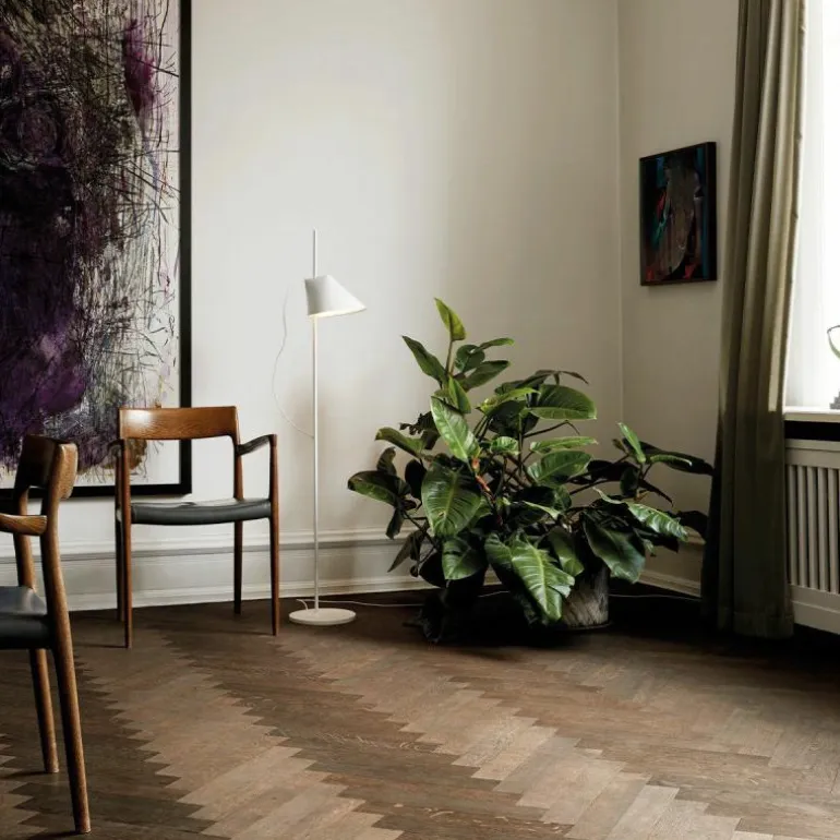 Deze minimalistische vloerlamp is voorzien van een knop aan de bovenkant van het armatuur, hiermee kunt u de lamp in- of uitschakelen en dimmen. Met de traploze dimmer kunt u een dimniveau kiezen tussen 15% en 100%. Dankzij de ingebouwde timerfunctie kunt u tevens instellen dat de Yuh vloerlamp na een periode van vier of acht uur vanzelf uit gaat.