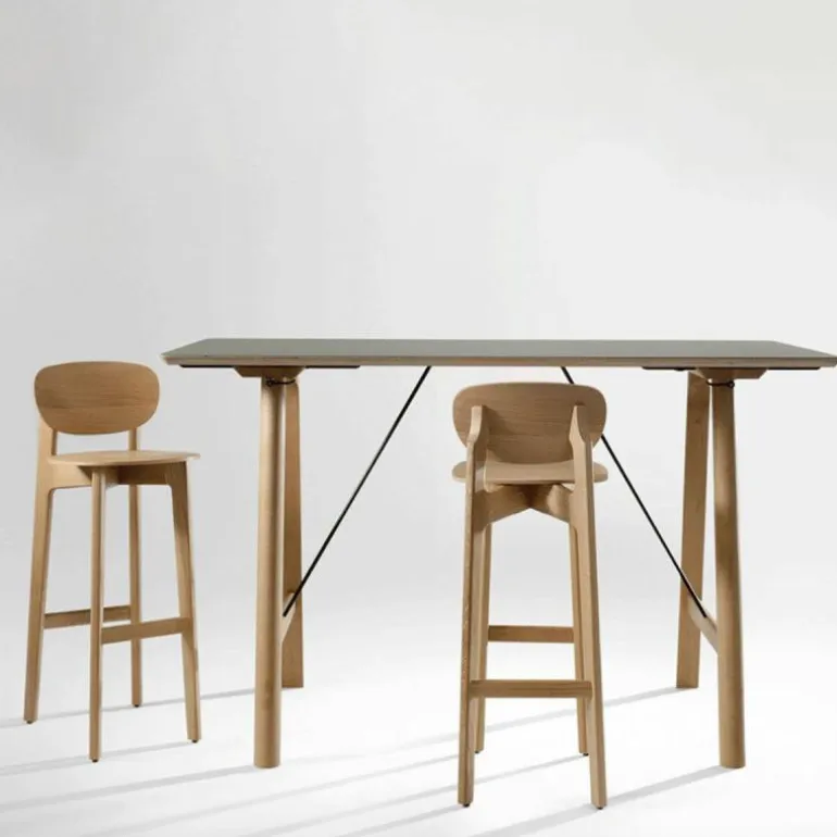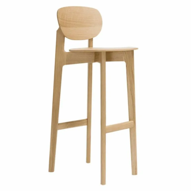 Het frame van de Zenso Barkruk is vervaardigd uit massief hout. De zitting en rugleuning zijn gemaakt van fineer. De barkruk is verkrijgbaar in eikenhout, gebeitst eiken en Amerikaans walnoothout. Voor de liefhebber van extra comfort is de barkruk te bestellen met een gestoffeerde zitting in combinatie met een houten- of een gewatteerde rugleuning. De taps toelopende stoffering nodigt u uit om plaats te nemen op het comfortabele kussen. De barkruk is verkrijgbaar in twee verschillende zithoogtes: 65 centimeter en 80 centimeter. De diepte bedraagt 50 centimeter en de breedte bedraagt 41 centimeter. r