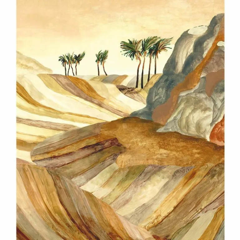 Het Arte Zerzura Behang is een ingetogen ontwerp van de Belgische Arte Studio en behoort tot de Kharga collectie. Kharga is de meest zuidelijke oase van Egypte en was een belangrijke tussenstop op de eeuwenoude handelsroute. De Kharga serie brengt deze route door de welbekende Saharawoestijn weer tot leven. r